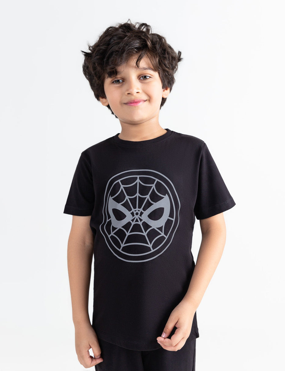 Let your little hero swing into action with this Spider-Man graphic t-shirt! Featuring a bold and dynamic print of the iconic Marvel superhero, this tee adds excitement and adventure to any outfit. Made from soft, breathable fabric, it ensures all-day comfort whether he's at school, playing outside, or relaxing at home. With a classic crew neck and relaxed fit, it pairs easily with jeans, shorts, or joggers for a cool, action-ready look. Perfect for every young Spider-Man fan!