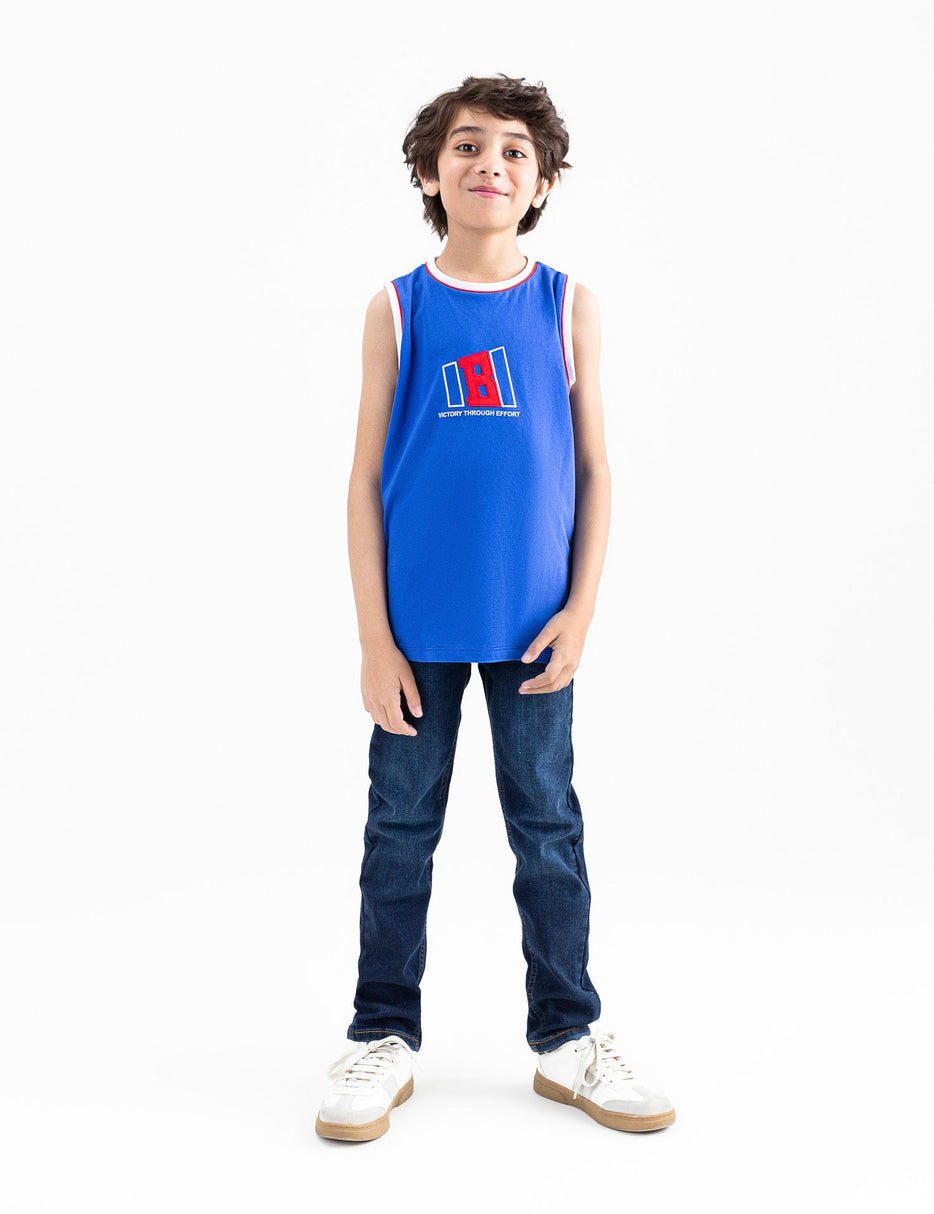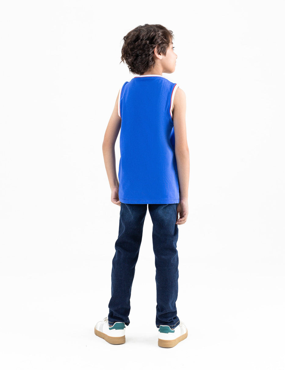 Let your little one make a statement with this stylish slogan printed tank top! Designed for comfort and style, this sleeveless top is made from soft, breathable fabric, keeping him cool during warm days.