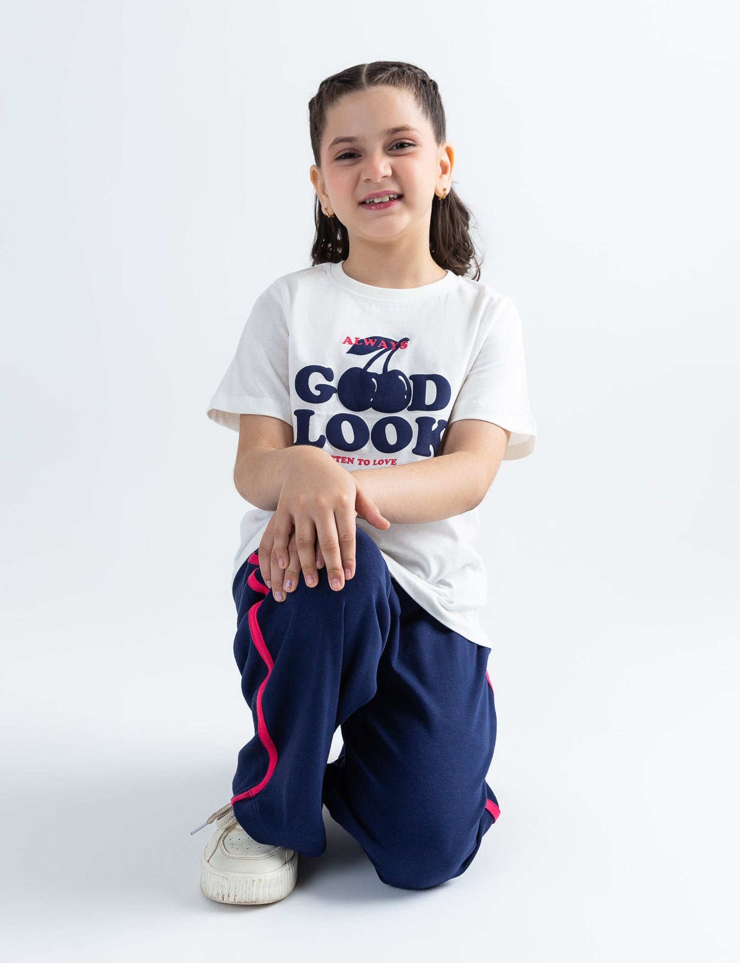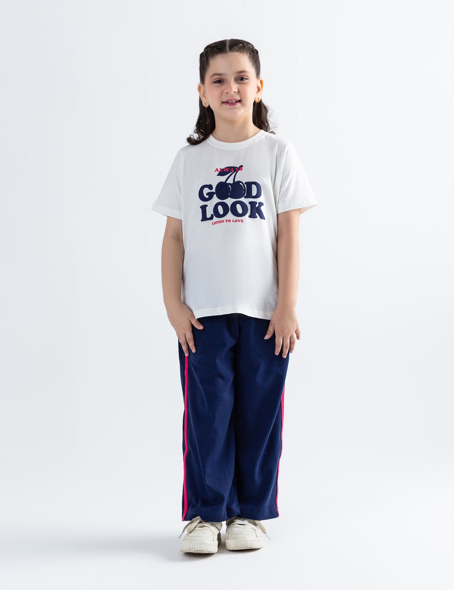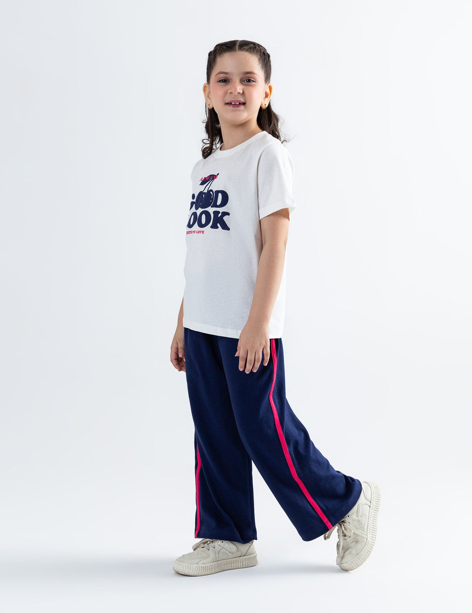 Stylish and fun, this 2-piece "Good Look" printed suit is perfect for your little trendsetter! The set includes a comfy graphic t-shirt with a cheerful "Good Look" print and matching trousers for a coordinated and casual look. Made from soft, breathable fabric, it’s ideal for everyday wear—whether she’s heading to a playdate, relaxing at home, or enjoying a sunny outing. With its cute design and easy fit, this outfit is a go-to for effortless style and comfort!