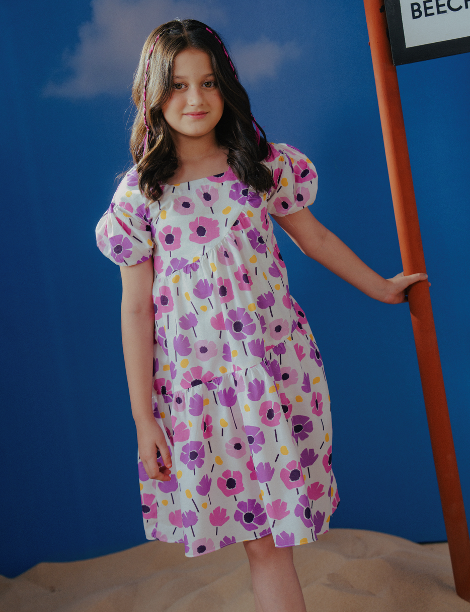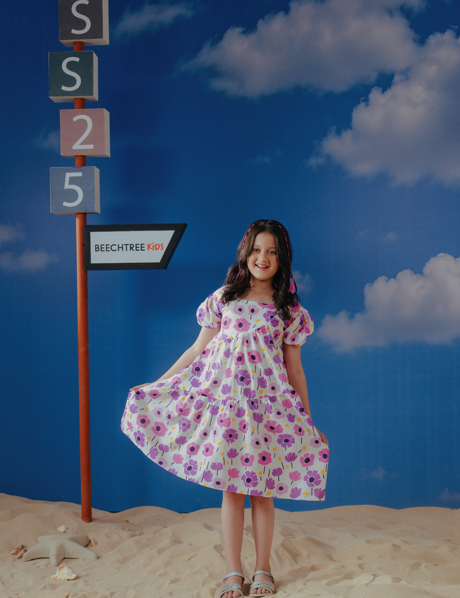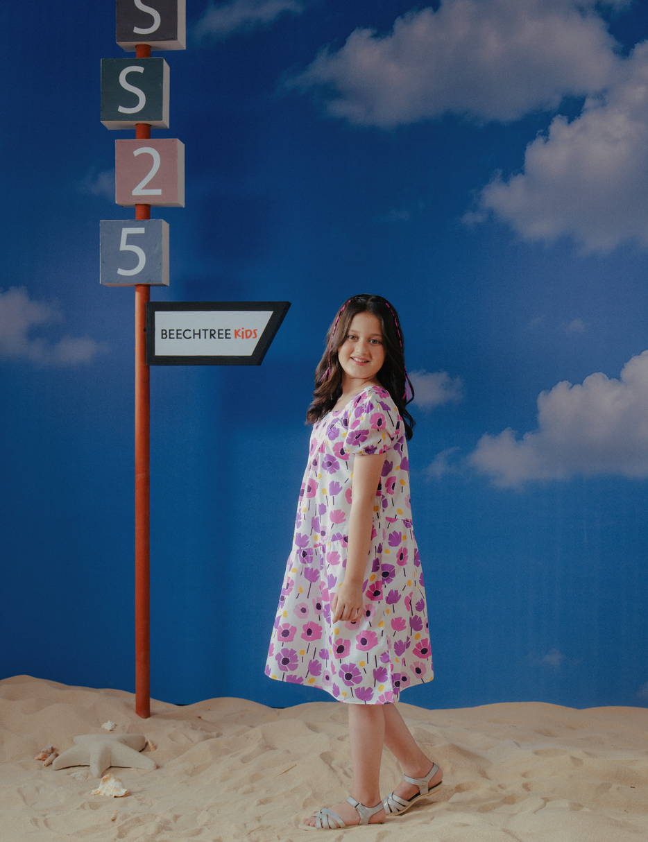 Brighten up her wardrobe with this charming floral printed dress, perfect for casual days, family gatherings, or special occasions! Featuring a beautiful all-over floral pattern, this dress brings a fresh, playful vibe to her look. Made from soft, breathable fabric, it offers all-day comfort and ease of movement. With its flowy silhouette and sweet design details, it’s perfect for twirling and looking effortlessly stylish. A must-have piece for every little girl's closet!