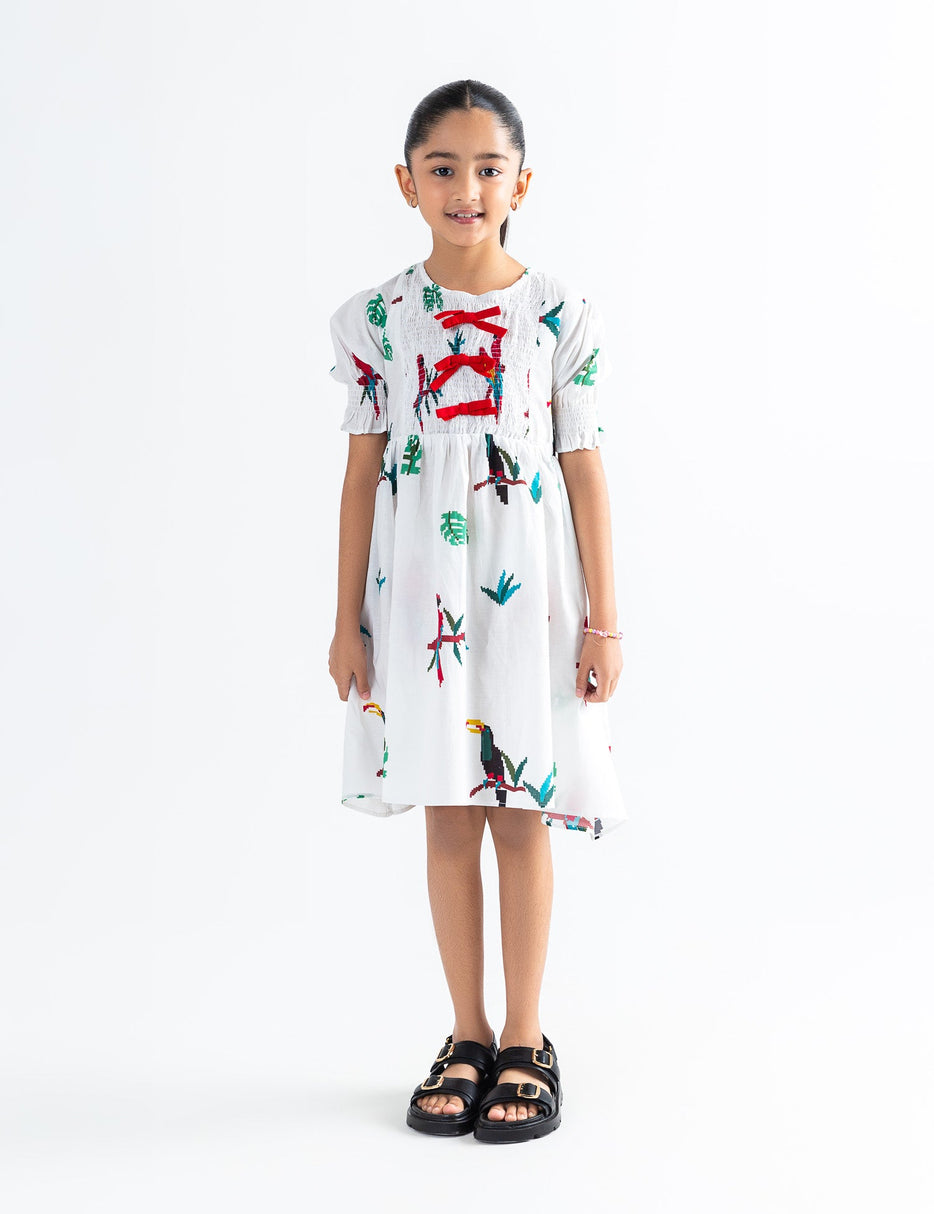 Let your girl step into a world of color and fun with this vibrant Tropical Parrot Print Dress. Featuring a playful all-over parrot and tropical leaf pattern, this dress is made for sunny days and carefree adventures. The lightweight, breathable fabric and relaxed fit ensure comfort all day long — perfect for vacations, parties, or casual outings.