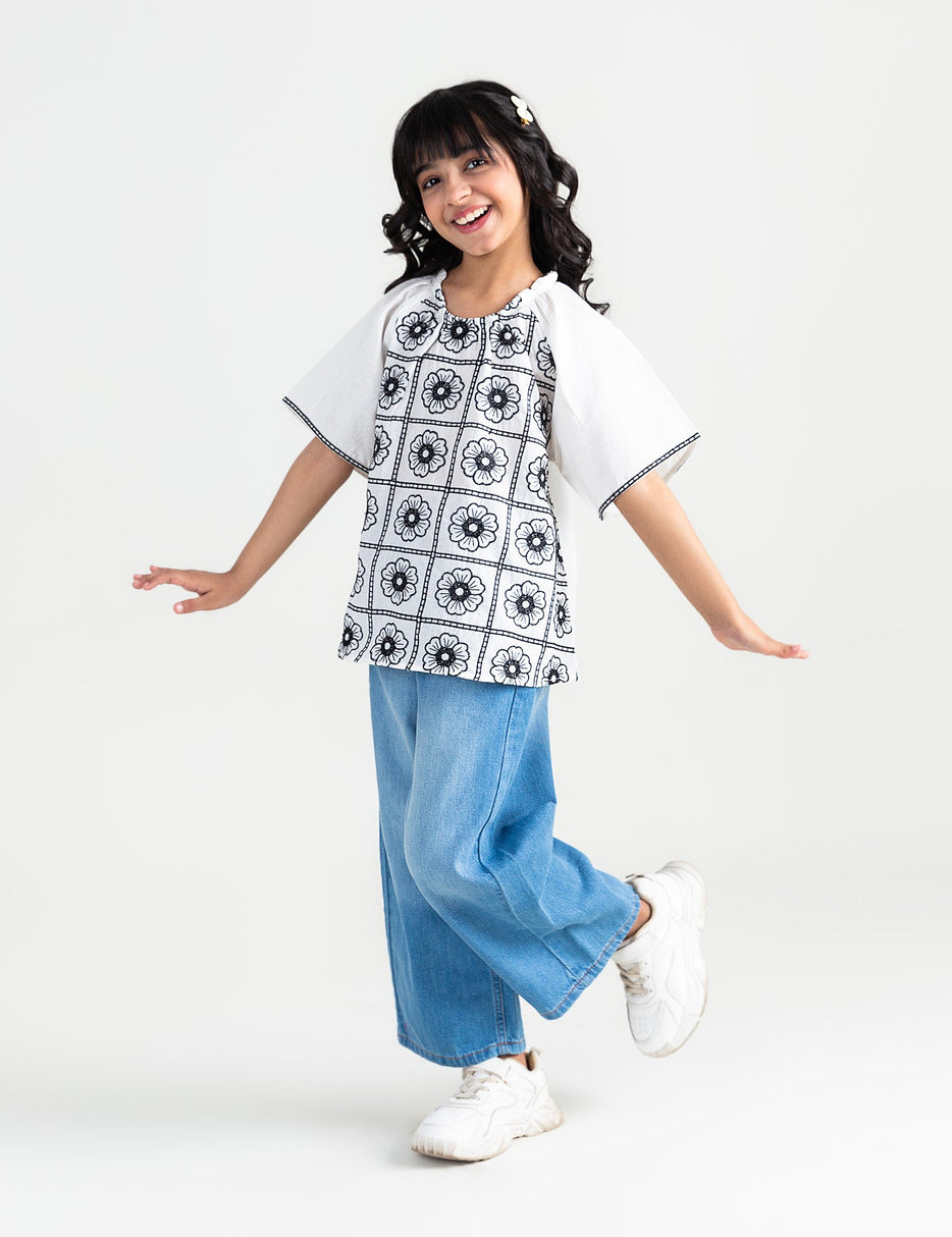 Bring charm and elegance to your girl's wardrobe with this beautiful Floral Embroidered Top. Delicately designed with intricate floral embroidery, this top adds a touch of sweetness and style to any outfit. Made from soft, breathable fabric, it offers all-day comfort while the fine details make it perfect for both casual and dressy occasions.