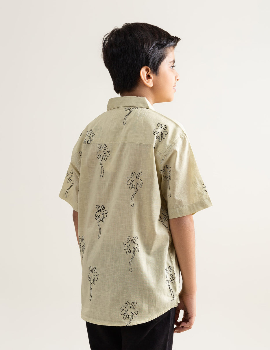 Bring beach vibes to his wardrobe with this palm tree graphic shirt, perfect for sunny days and casual adventures! Featuring an all-over palm tree print, this shirt adds a fun, tropical flair to any outfit. Designed with a button-down front and classic collar, it offers a relaxed yet stylish look. Made from lightweight, breathable fabric, it keeps him cool and comfortable all day long. Great for vacations, outings, or everyday wear!