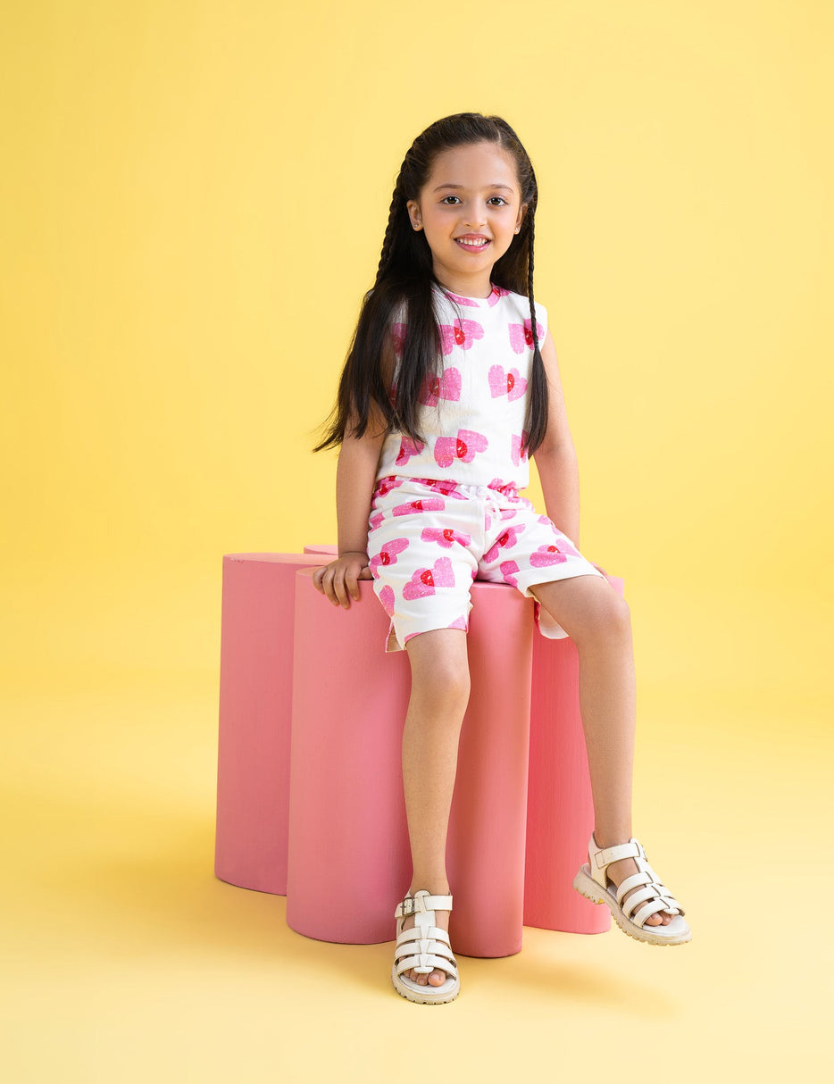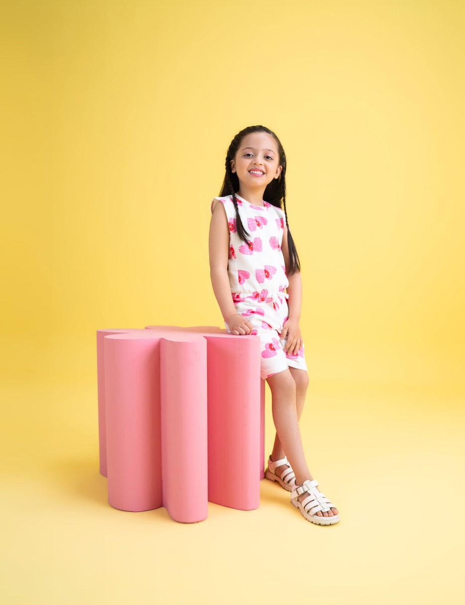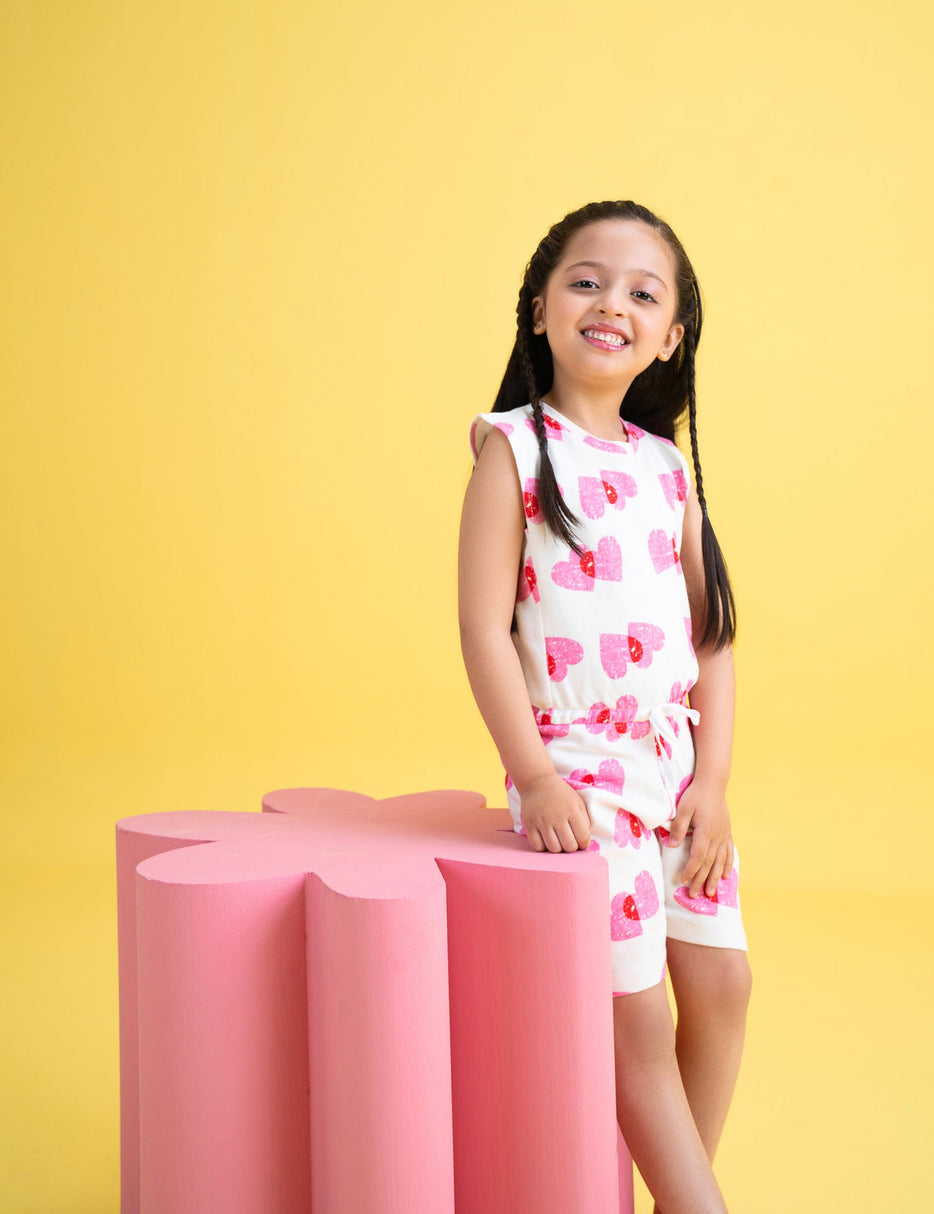 This adorable jumpsuit is the perfect blend of style and comfort for your little fashionista! Featuring a charming allover heart print, this one-piece outfit is designed to make your little girl feel as cute as can be. Crafted from soft, breathable fabric, it ensures all-day comfort for playtime, outings, or special occasions.