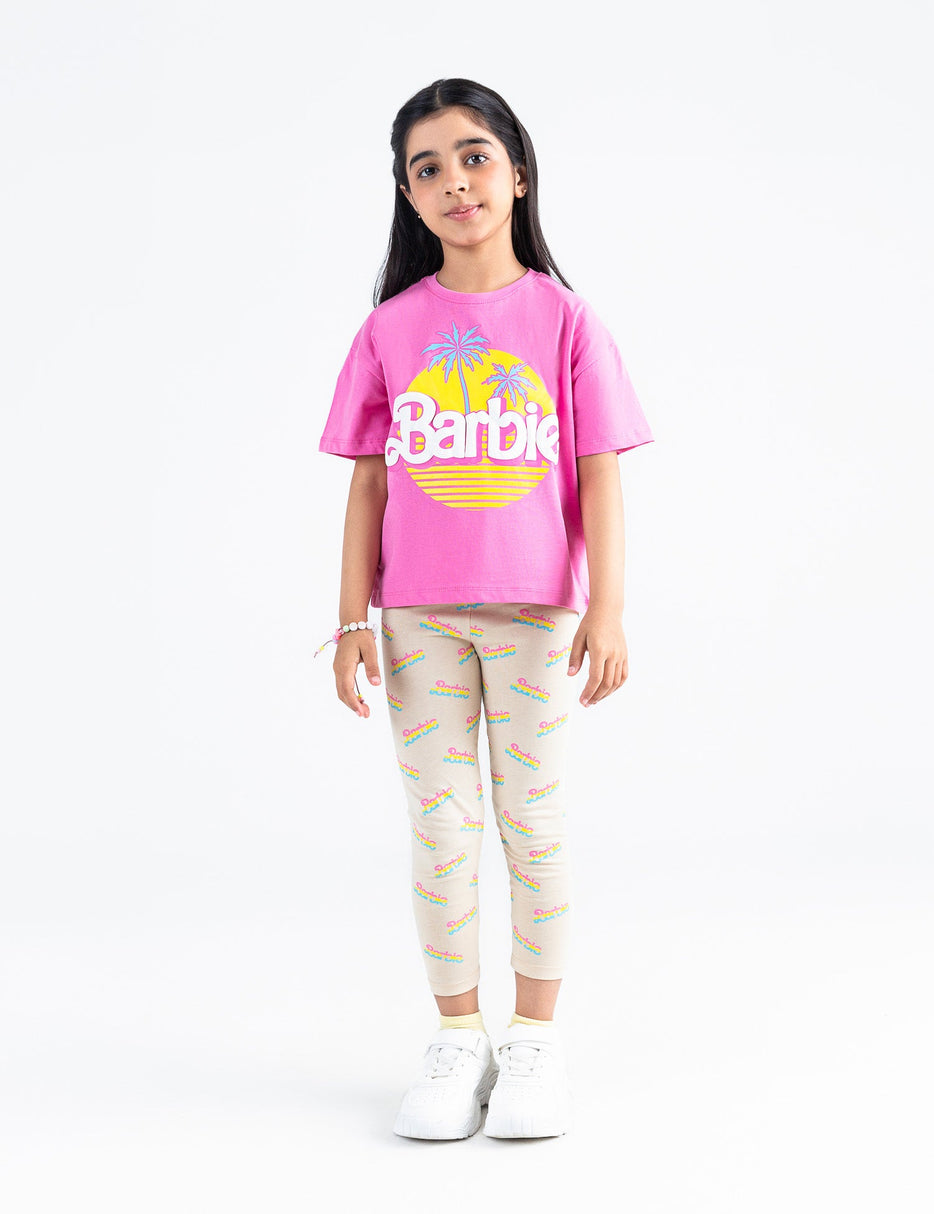 This set features a top adorned with a print. The set is completed with leggings crafted from soft fabric. A stretchy waistband ensures your little one's comfort and mobility throughout the day. This delightful girls' set is the perfect choice for everyday wear.