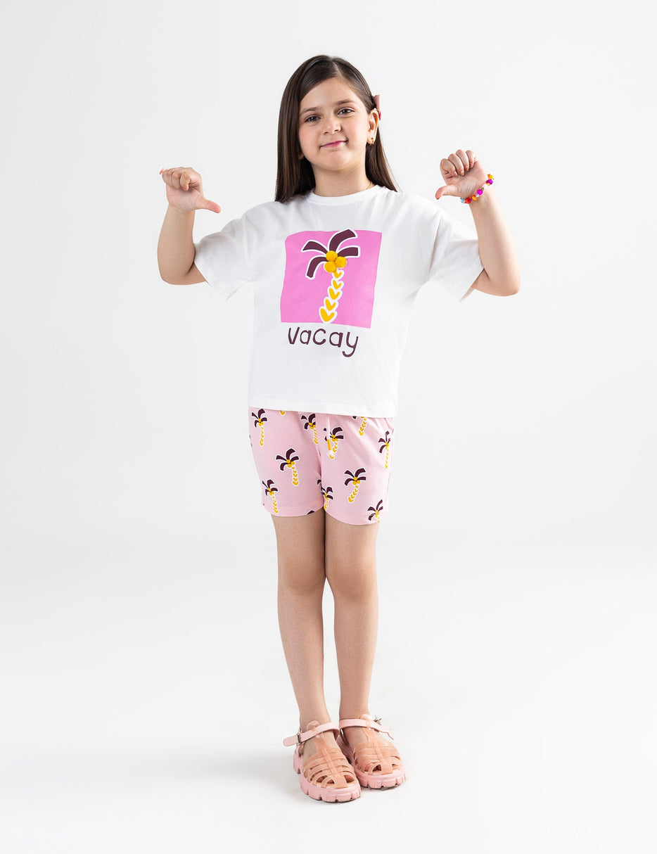 Bring vacation vibes to her everyday look with this 2-piece palm tree graphic suit! Featuring a fun and colorful palm tree printed top paired with matching comfy shorts, this set is perfect for sunny days, playdates, or holiday outings. Made from soft, breathable fabric, it keeps her cool and comfortable all day long.