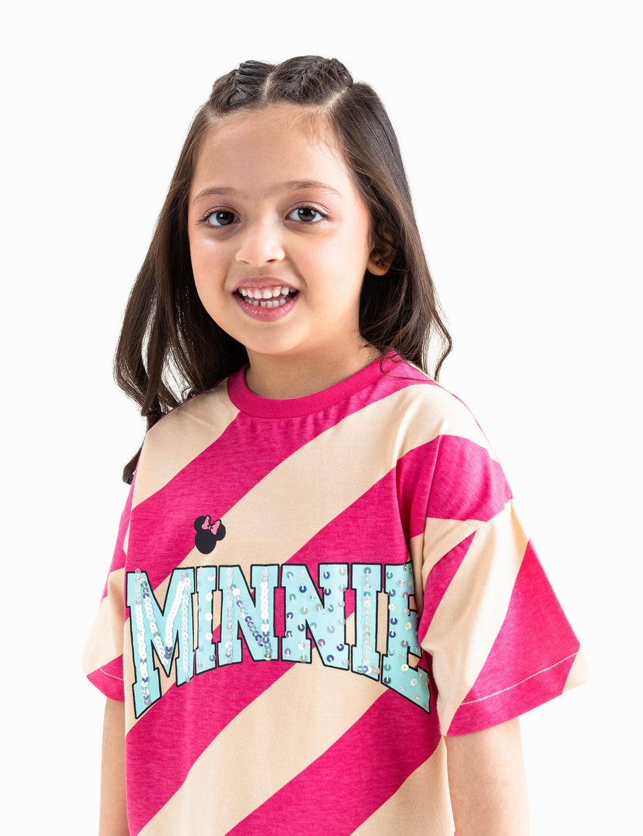 Add a touch of Disney magic to your little girl’s wardrobe with our Minnie Sequined T-Shirt! Featuring everyone’s favorite fashion-forward mouse, this adorable t-shirt is perfect for little ones who love to sparkle and shine. Whether she’s heading to a party, a playdate, or just enjoying a day out, this shirt will make her feel like a star.
