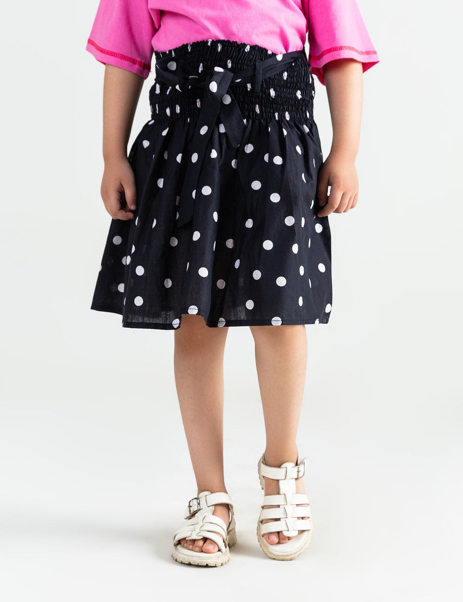 Add a touch of timeless charm to your little girl’s wardrobe with this adorable polka dot printed skirt. Made from soft, breathable fabric, it features a comfortable elastic waistband for easy dressing and all-day comfort. The classic polka dot pattern gives it a playful, vintage-inspired look that's perfect for everyday wear, parties, or special occasions. Available in various cheerful colors, this skirt pairs beautifully with tops, tees.