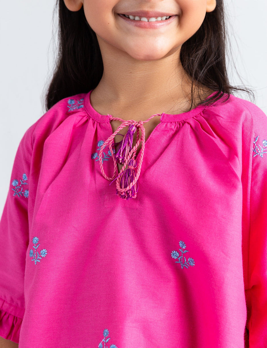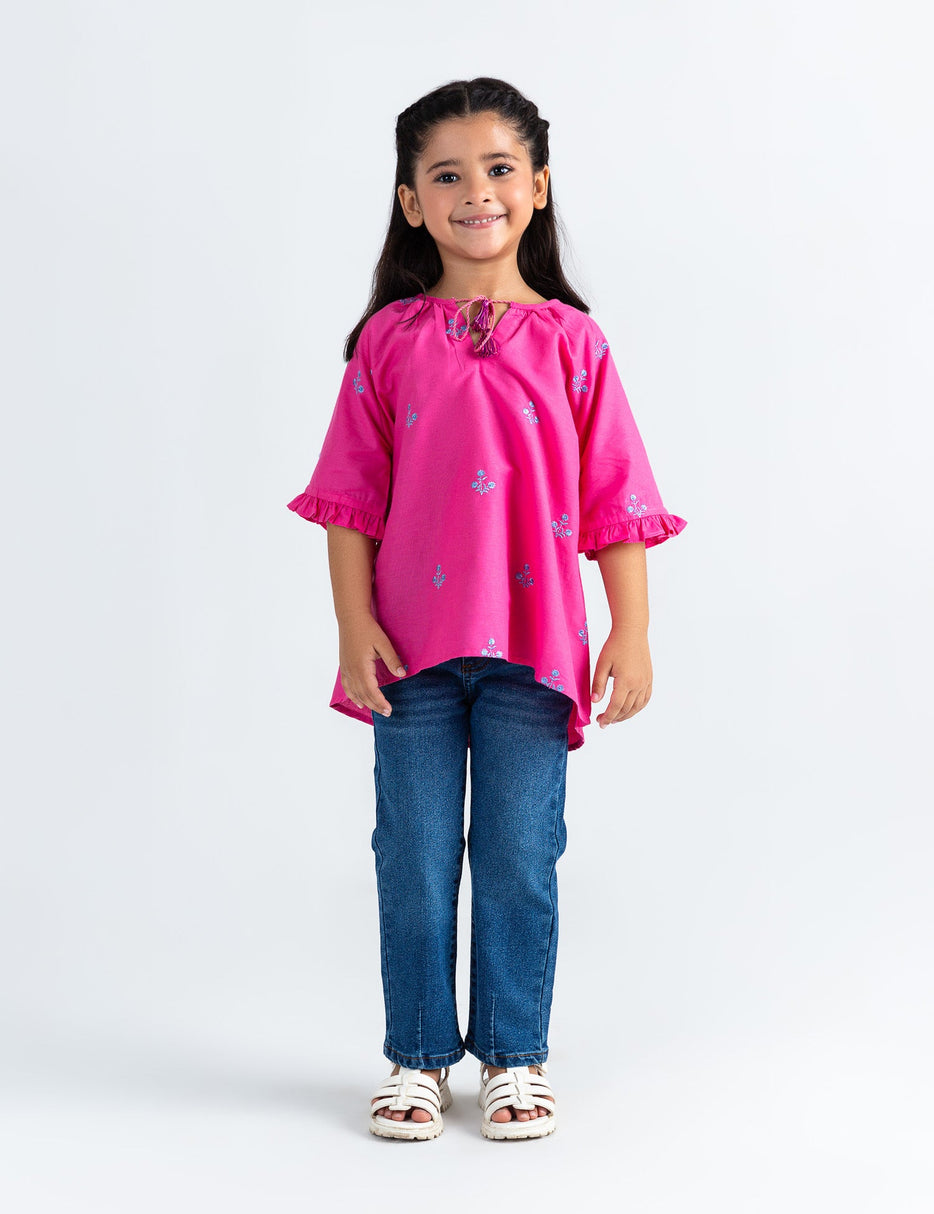Add a touch of sweetness to her look with this floral embroidered top, perfect for both everyday wear and special occasions. Featuring delicate floral embroidery on soft, breathable fabric, this top combines comfort with charming style. The lightweight feel and relaxed fit make it ideal for playtime, school, or outings, while the beautiful stitched details add a lovely, feminine touch. Pair it with jeans, leggings, or a skirt for a fresh and pretty outfit!