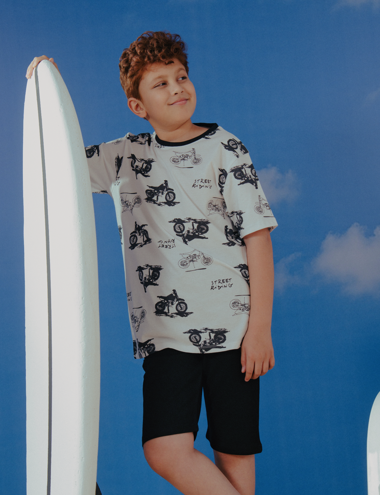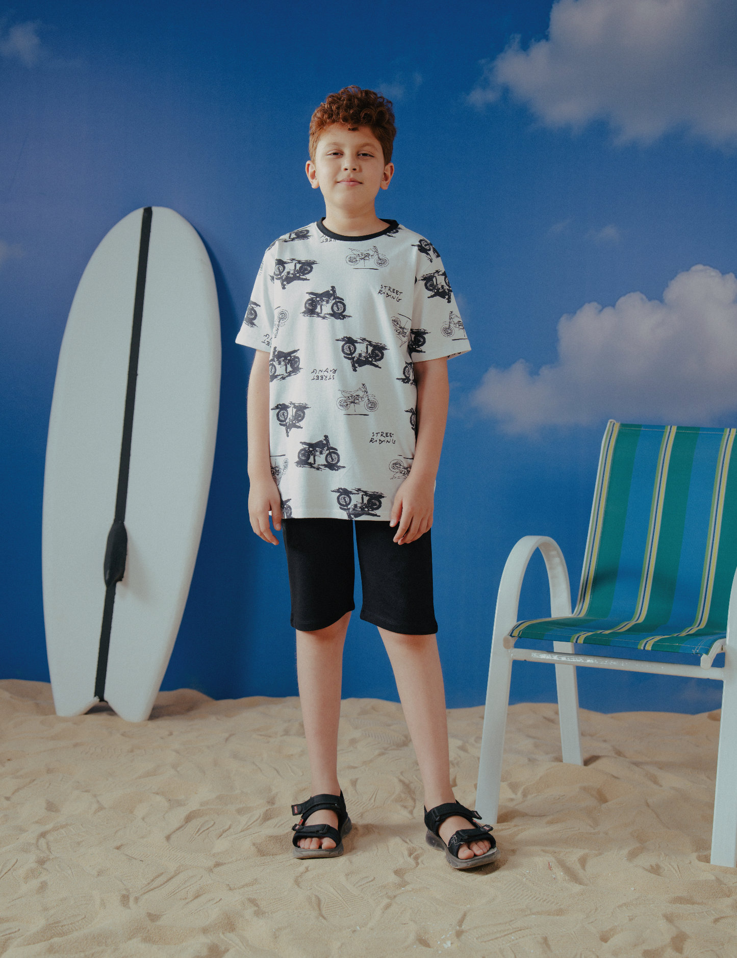 Fuel his style with this 2-piece street racing graphic suit, perfect for little speed lovers! This energetic set includes a bold graphic t-shirt featuring a cool street racing design, paired with matching comfortable shorts for an action-ready look. Made from soft, breathable fabric, it’s ideal for playtime, outings, or lounging. The coordinated set makes dressing quick and stylish—perfect for boys who love fast cars and fun adventures!
