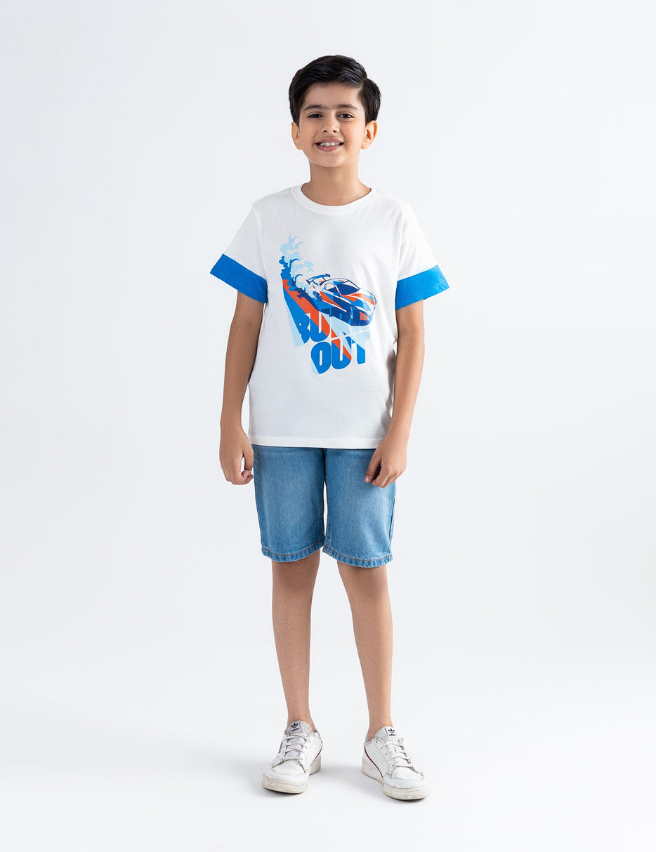 This Burn Out t-shirt is the perfect way to add a touch of fun to your child's wardrobe. Featuring a playful 'car doing a burn out' print on a stylish off-white base, this tee combines practicality with comfort, ensuring your little one feels great all day long.