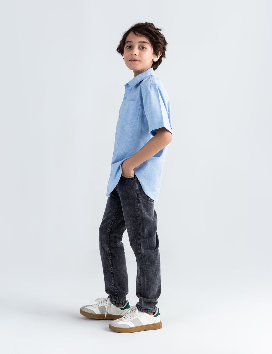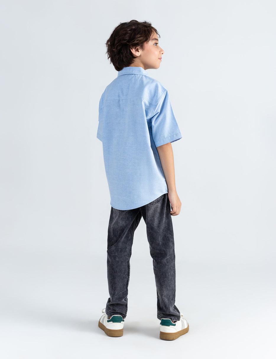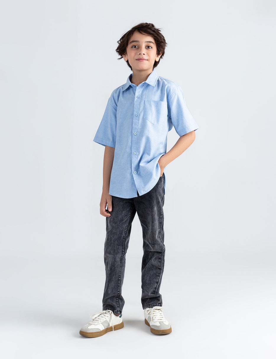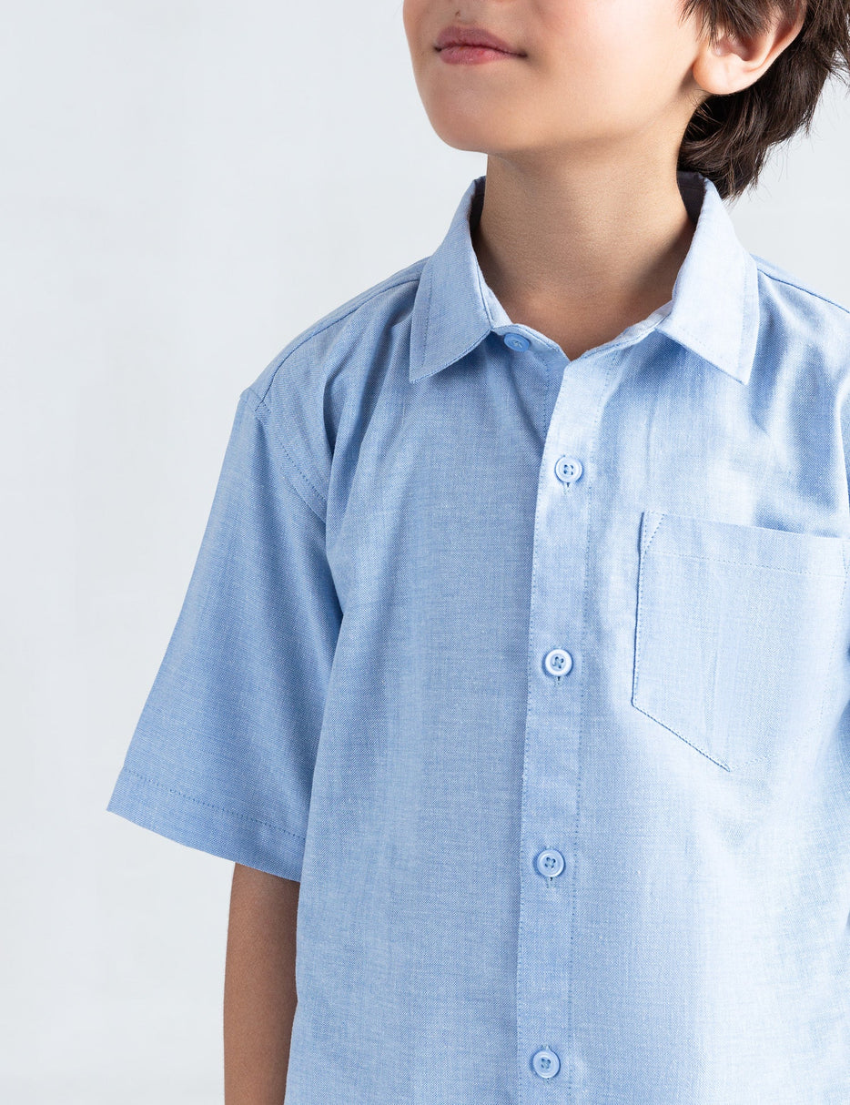Simple, smart, and versatile—this basic button-down shirt for boys is a wardrobe essential for any occasion. Featuring a classic collared neckline, front button closure, and a neat, clean-cut design, it delivers a polished look with everyday comfort. Made from soft, breathable fabric, it’s perfect for school, family events, or casual outings. Easy to pair with jeans, chinos, or shorts for a look that’s both timeless and stylish.