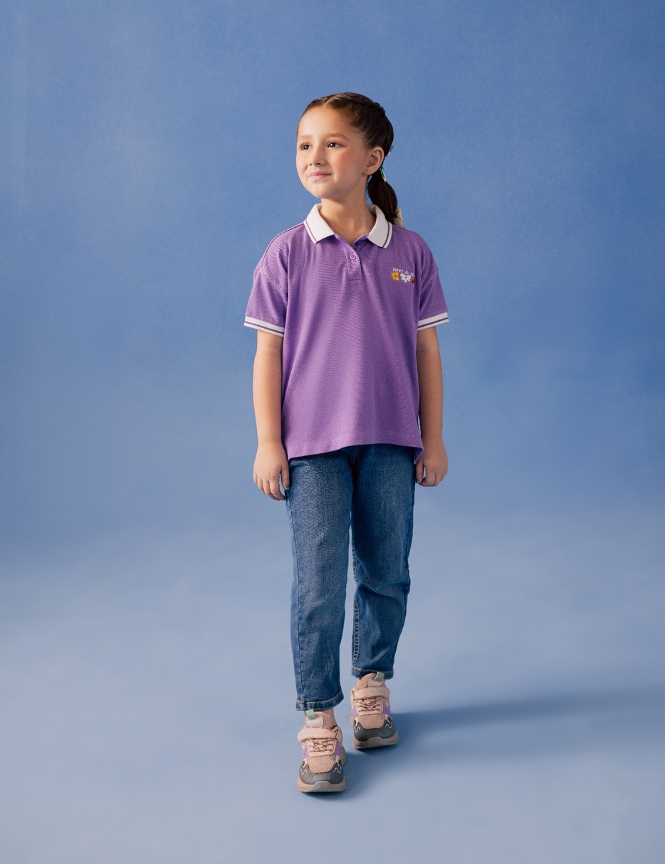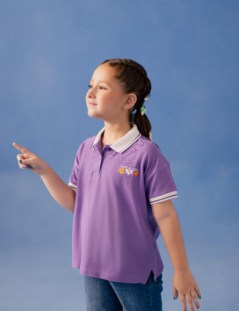 Add a touch of elegance to her everyday look with this floral embroidered polo for girls. Made from soft, breathable piqué fabric, this polo features a classic collar and button placket, giving it a smart, timeless style. The highlight is the delicate floral embroidery on the chest, adding a sweet and feminine twist to a sporty silhouette. Perfect for school, outings, or casual gatherings—pair it with jeans, shorts, or skirts for a neat and stylish outfit!