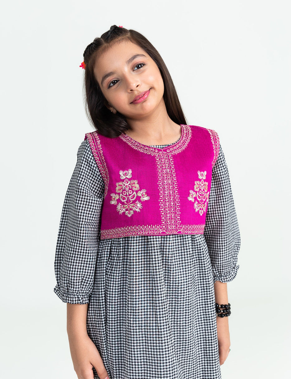 Gorgeous fabric is designed with love and in contrast thread with fun embroidery detail on waistcoat. Paired with matching contrast waistcoat Must have this for upcomig winter season.
