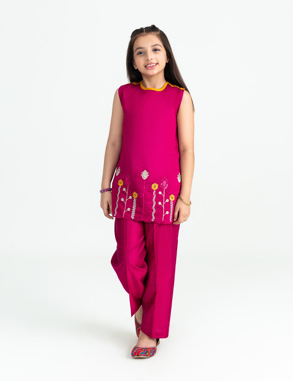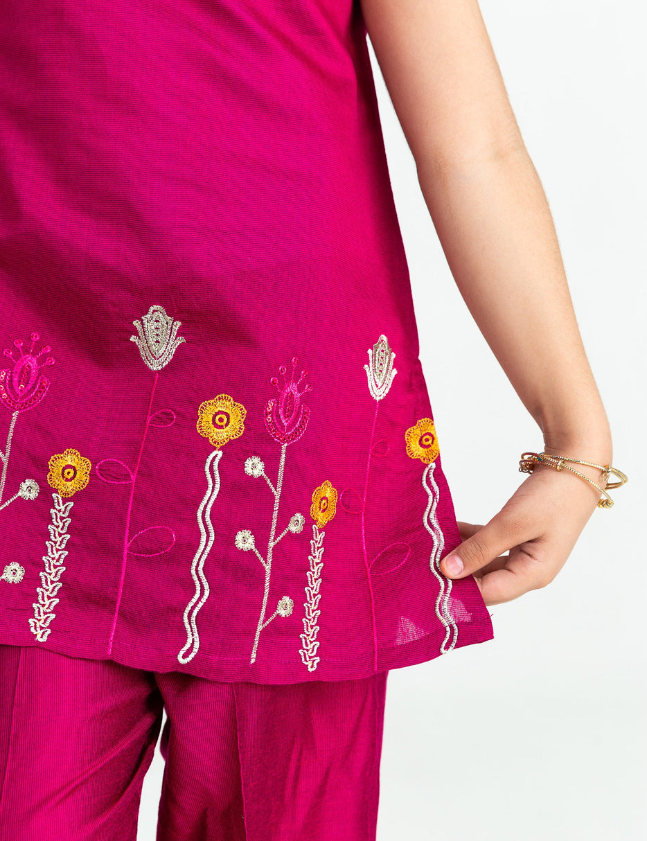 Gorgeous fabric is designed with love , and floral embroidered motifs on hem. Paired with matching trouser. Must have this for upcomig summer season.