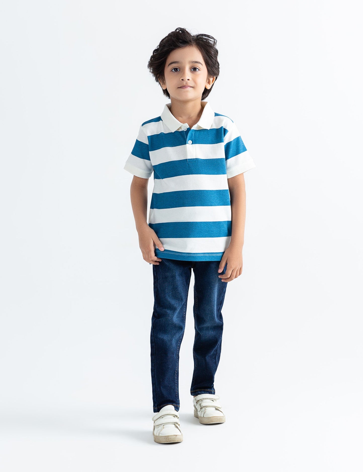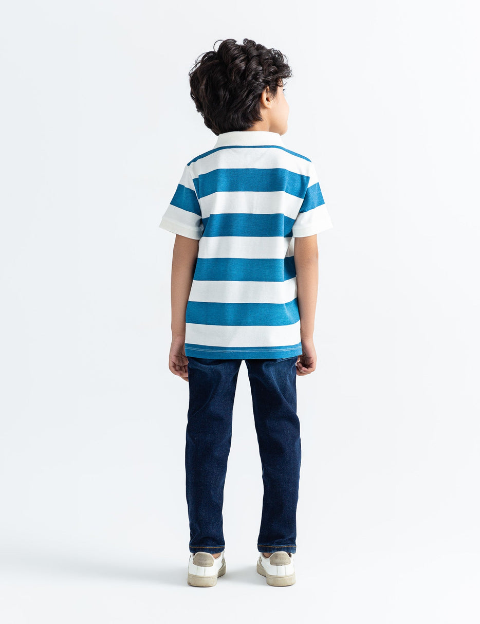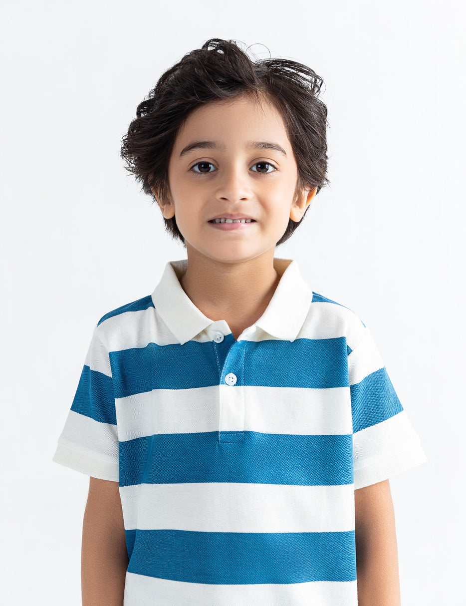 Keep it classic with this striped polo shirt for little boys, featuring bold navy and white horizontal stripes. Made from soft, breathable pique fabric, it offers all-day comfort with a polished look. The ribbed collar and single-button placket add timeless charm, making it perfect for school, family outings, or casual days.