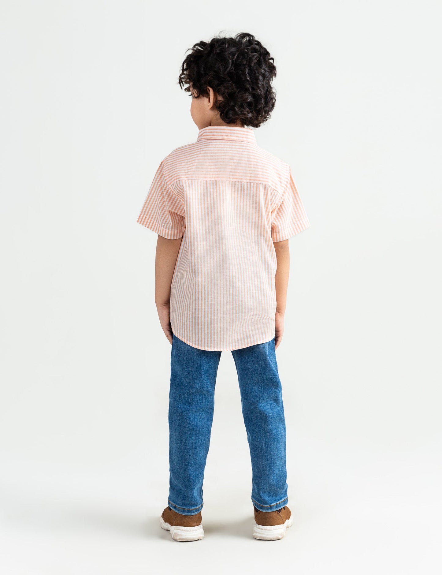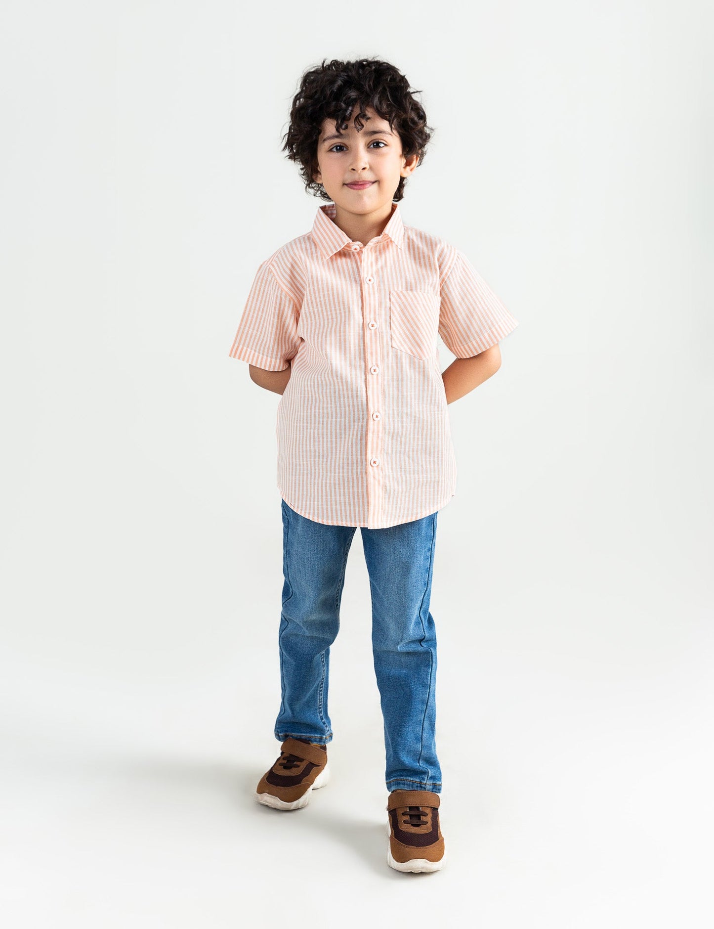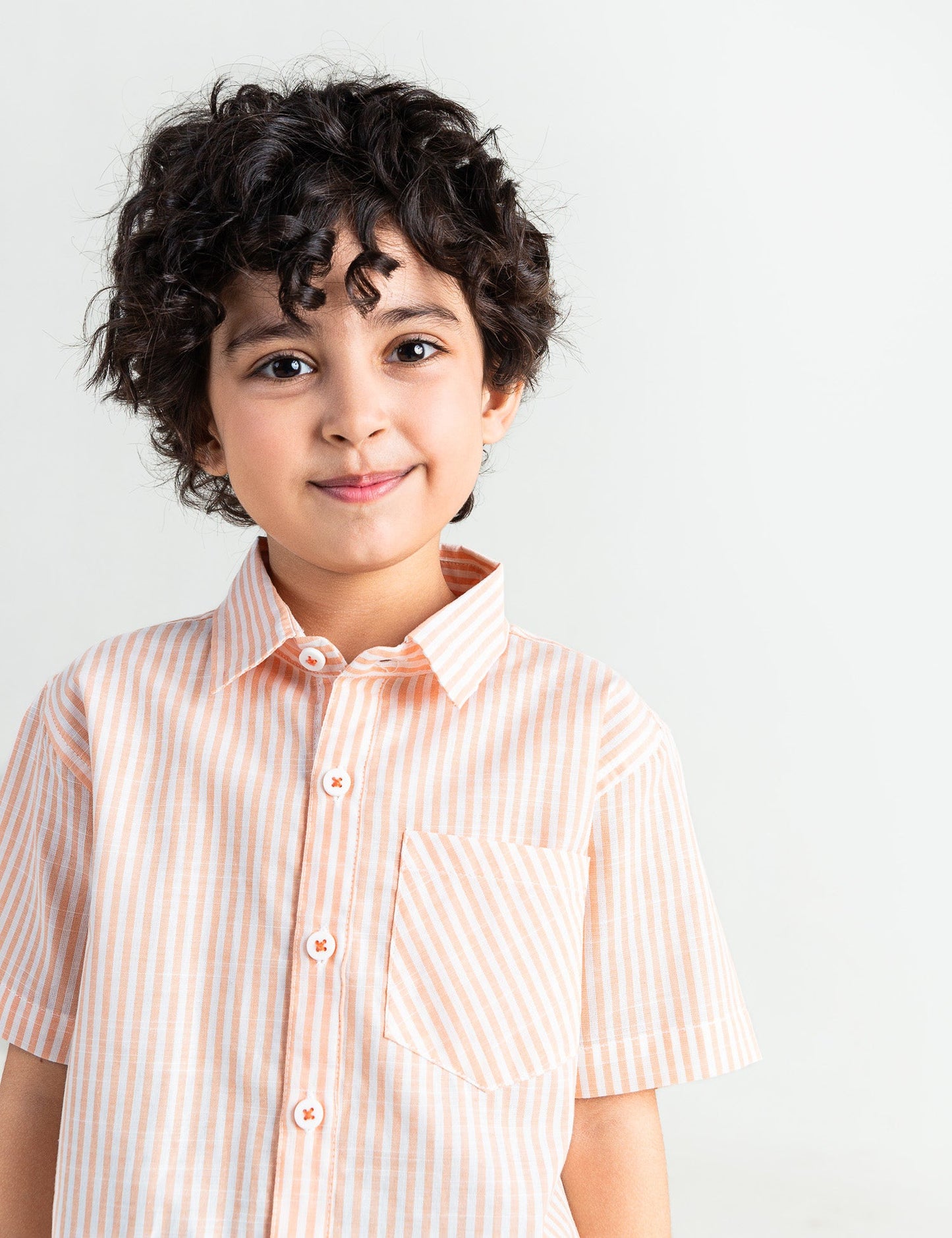 This classic striped shirt for little boys features soft, breathable cotton fabric for all-day comfort. With its timeless horizontal stripes in cheerful colors, it’s perfect for both playtime and casual outings. The shirt includes a crew neckline, short sleeves, and a relaxed fit that allows easy movement. Durable stitching ensures it holds up to active wear, while the tag-free design keeps it itch-free and comfy.