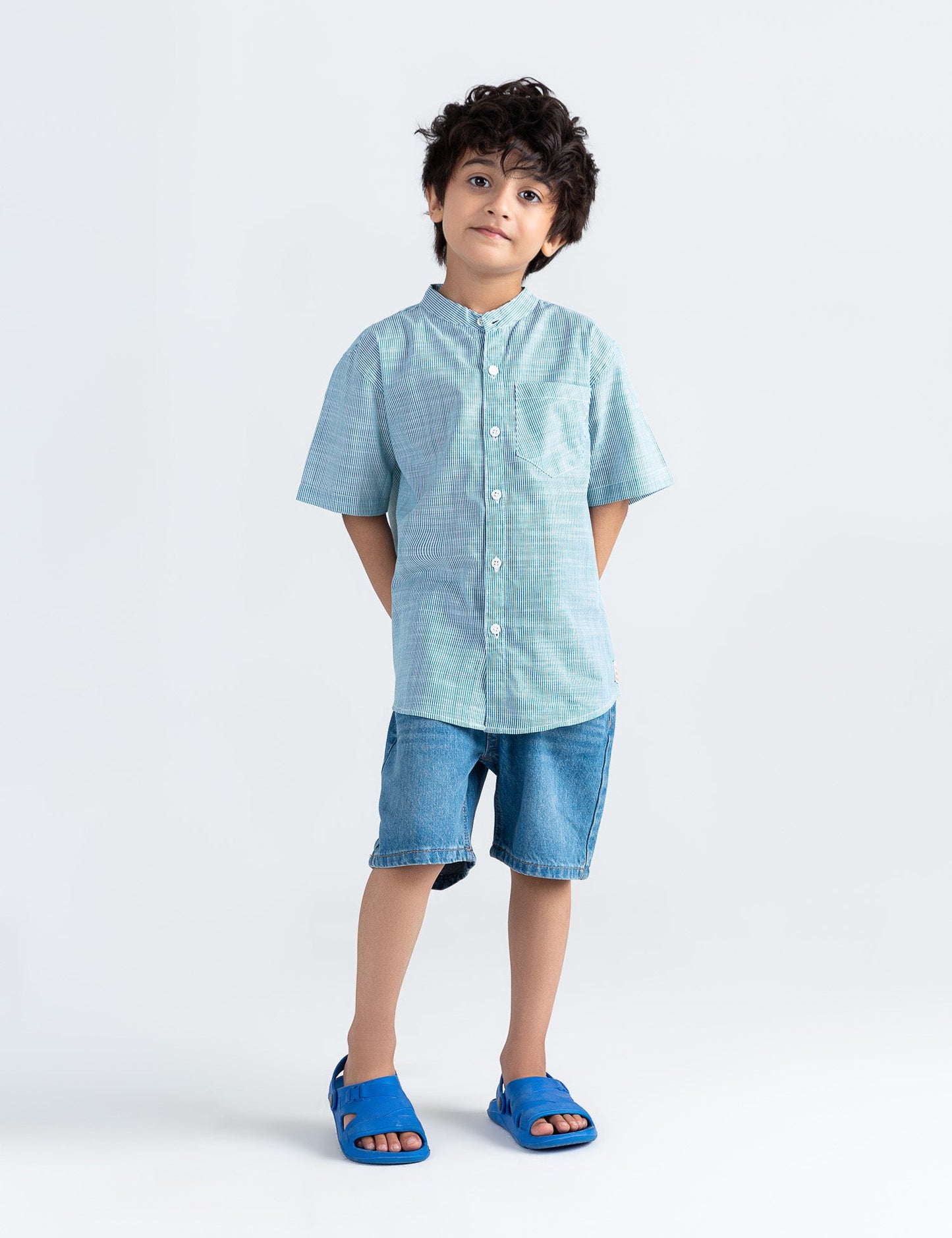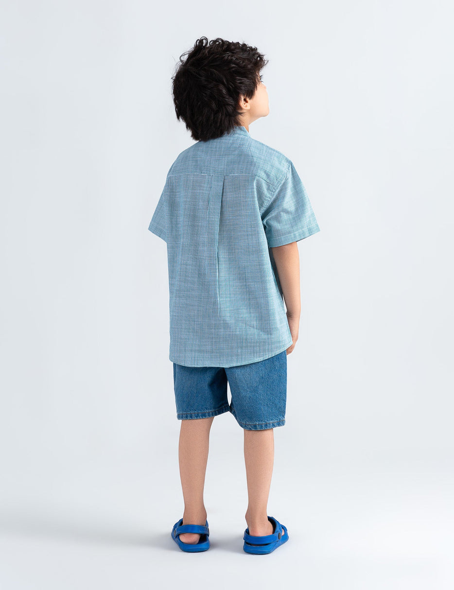 Give his look a smart upgrade with this striped button-down shirt, perfect for both casual outings and special occasions. Featuring a classic vertical stripe pattern, this shirt adds a timeless touch to his wardrobe. Made from soft, breathable fabric, it ensures all-day comfort, while the banned collar neckline and button-front design bring a polished finish. Easy to pair with jeans, chinos, or shorts—ideal for school, events, or family gatherings.