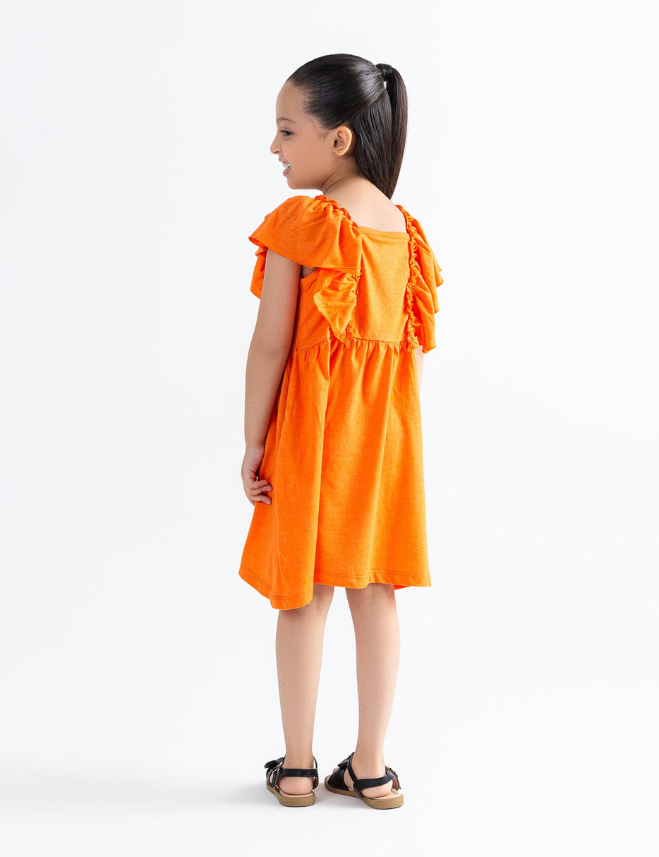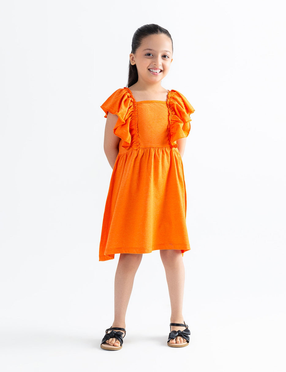 Brighten up your little girl's wardrobe with this charming dress. Made from soft, breathable cotton, it features fluttery ruffle sleeves and a comfortable gathered waistline that allows ease of movement and a cute, playful silhouette. Perfect for warm-weather outings, parties, or everyday fun, this dress combines simplicity with a touch of flair.
