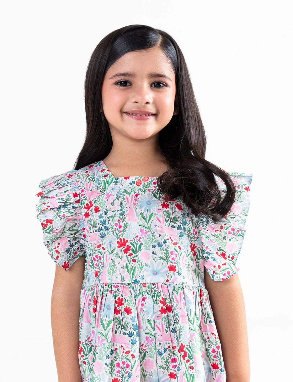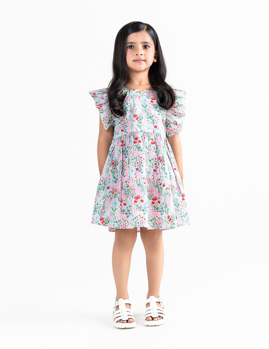 Let your little one shine in this charming floral printed dress, perfect for any occasion! Featuring a beautiful all-over floral pattern, this dress adds a touch of sweetness to her wardrobe. Made from soft, breathable fabric, it ensures all-day comfort, while the lightweight and flowy design allows for easy movement. Whether for a party, playdate, or a casual day out, this dress is a must-have for every little fashionista!