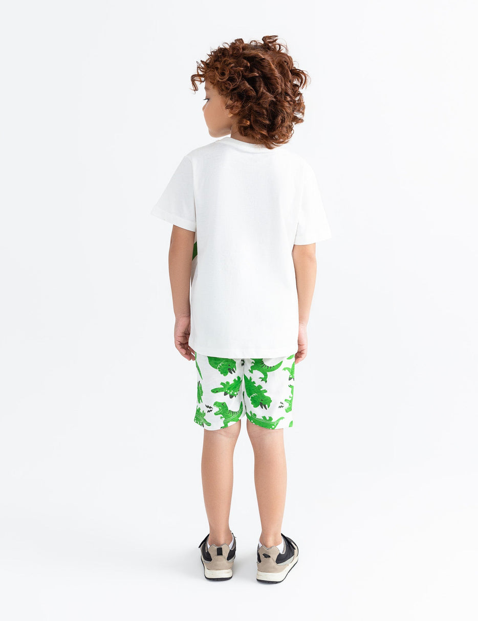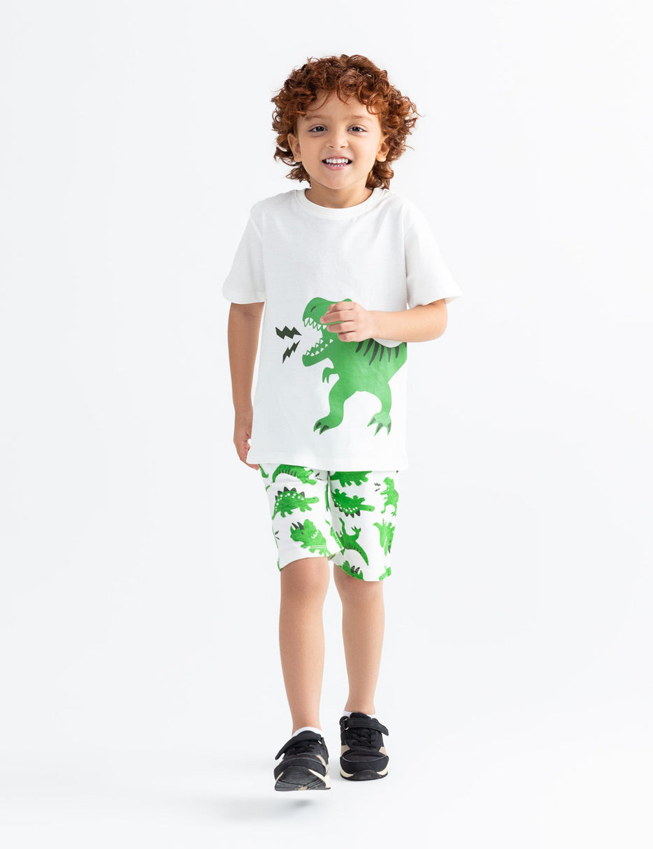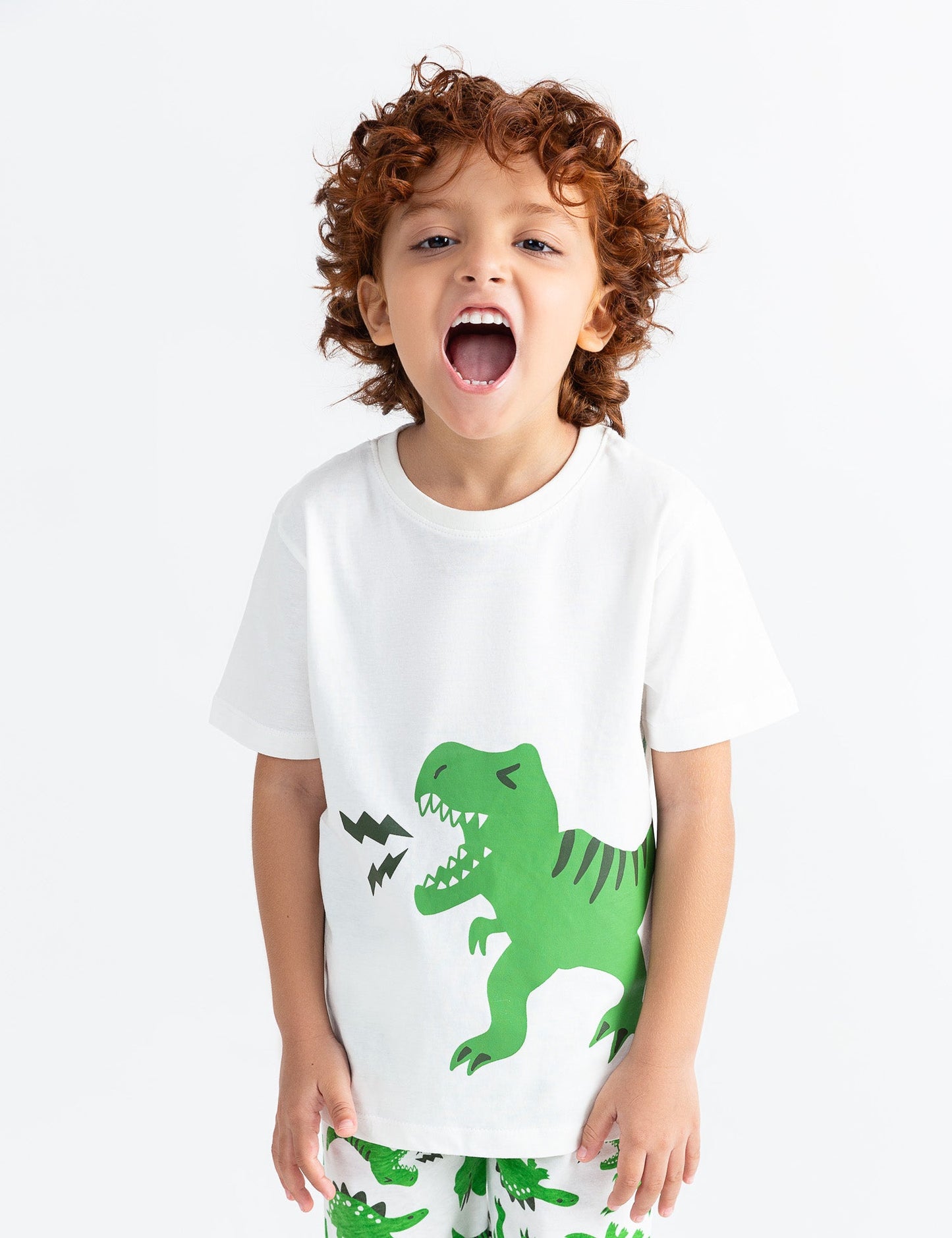 Add a playful touch to his everyday style with this 2 Piece Dino Graphic Suit for little boys. The set includes a fun dinosaur-printed t-shirt paired with matching shorts for a coordinated and comfy look. Made from soft and breathable fabric, it’s perfect for active days, playdates, or casual outings. A must-have outfit for little dino lovers!