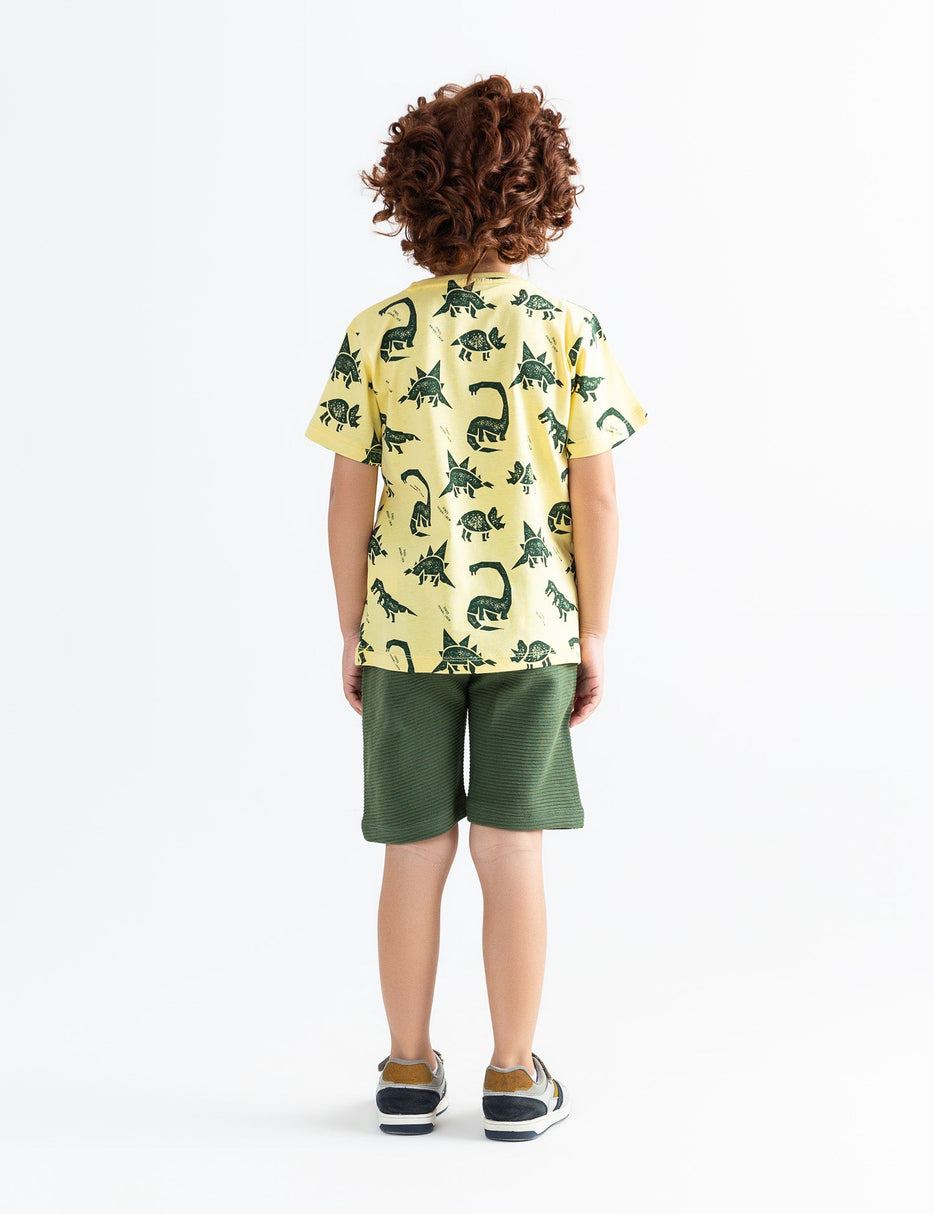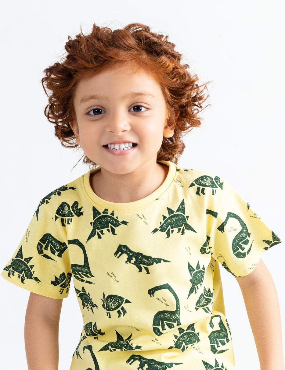 Bring fun and adventure to his everyday style with this Allover Dino's Animal Crew Printed T-Shirt for little boys. Designed with a playful mix of dinosaurs and animal crew prints, this tee adds a lively touch to his casual outfits. Made with soft and breathable fabric, it ensures all-day comfort whether he’s at play, school, or on a family outing. A perfect pick for little explorers who love dinos and animals!