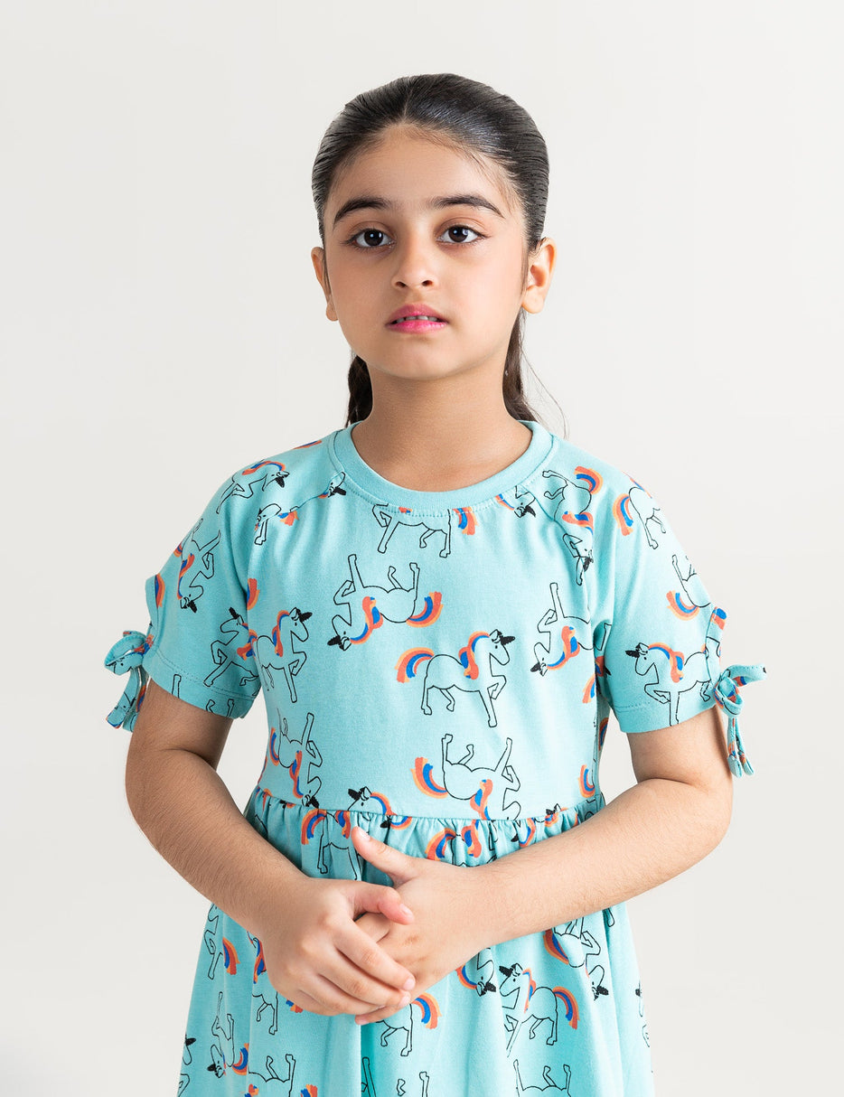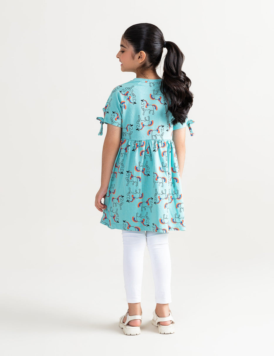 Bring a touch of magic to her wardrobe with this Allover Unicorn Printed Dress for Little Girls. Featuring a whimsical unicorn print throughout, this dress is designed to spark joy and imagination. Made from soft, breathable fabric with a comfortable fit, it’s perfect for parties, playdates, or everyday adventures. A fun and enchanting choice for little dreamers!