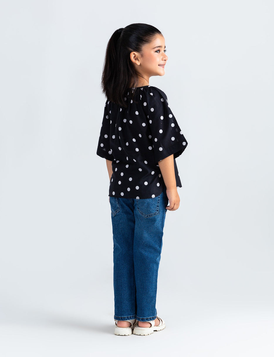 Add a playful twist to her everyday look with this polka dot printed button-down top! Featuring a classic button-front design and a cheerful all-over polka dot print, this top is perfect for school, outings, or family events. Made from soft, breathable fabric, it ensures all-day comfort, while the collared neckline and relaxed fit add a polished yet fun touch. Pair it with jeans, skirts, or leggings for a sweet and stylish outfit!