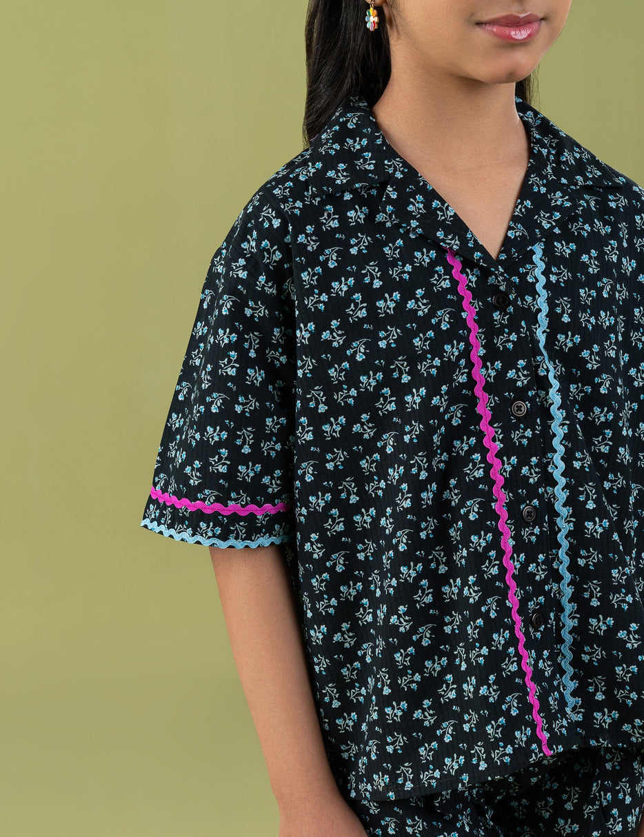 Add a stylish touch to her wardrobe with this elegant floral printed 2 piece suit for girls. Featuring a beautifully printed top with contrast lace detailing along the front and sleeves, paired with a matching bottom, this outfit blends modern charm with everyday comfort. Crafted from soft, breathable fabric, it’s perfect for casual wear, outings, or semi-formal occasions. A chic and comfortable choice she’ll love to wear again and again.