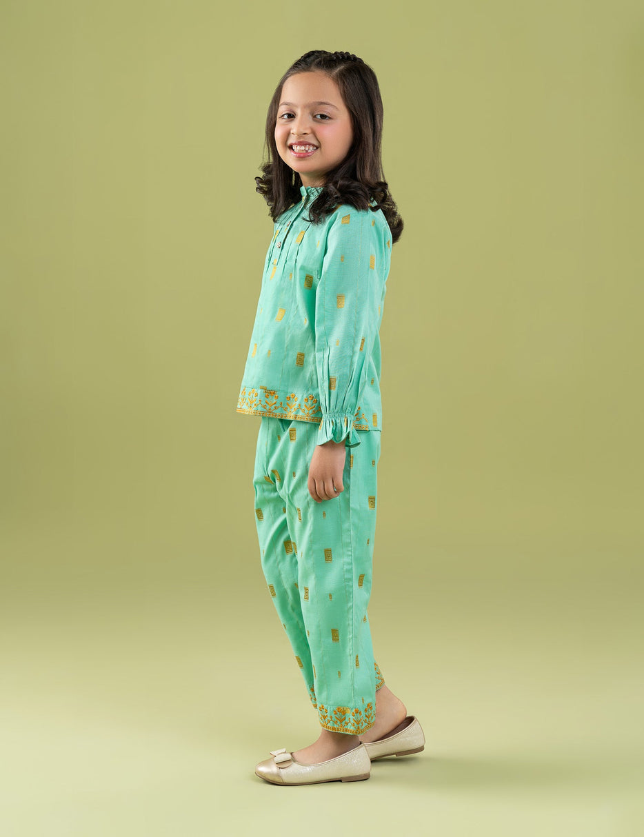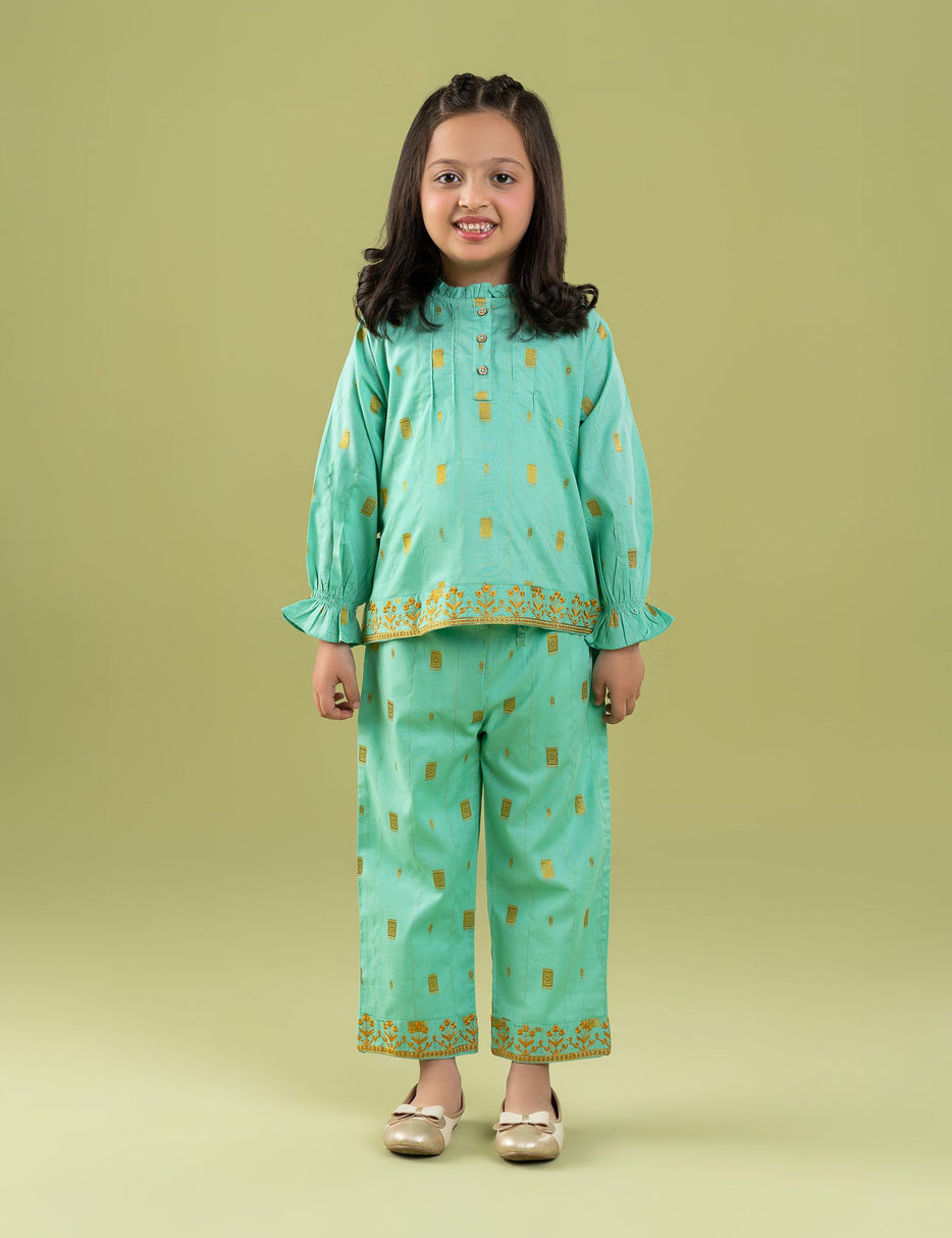 This elegant 2-piece floral embroidered suit for girls is designed to blend comfort with timeless style. Crafted from soft, breathable fabric, the set includes a beautifully embroidered top paired with matching bottoms for a coordinated look. The delicate floral embroidery adds a graceful and charming touch, making it perfect for festive occasions, family gatherings, or special outings. Designed for easy movement and all-day wear, this suit keeps your little one comfortable while looking effortlessly stylish.