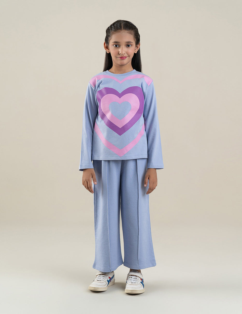 Cute and comfy 2-piece set for girls featuring an adorable heart print design. The set includes a stylish top and matching bottoms, both crafted from soft, breathable fabric for everyday comfort. Perfect for casual outings, playdates, or lounging at home, this heart-printed outfit adds a sweet and playful touch to your girl’s look.