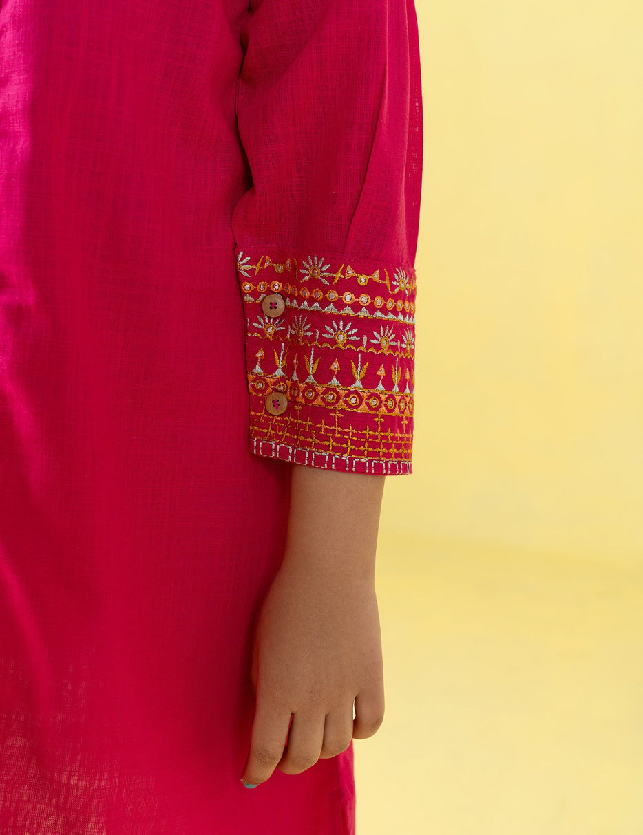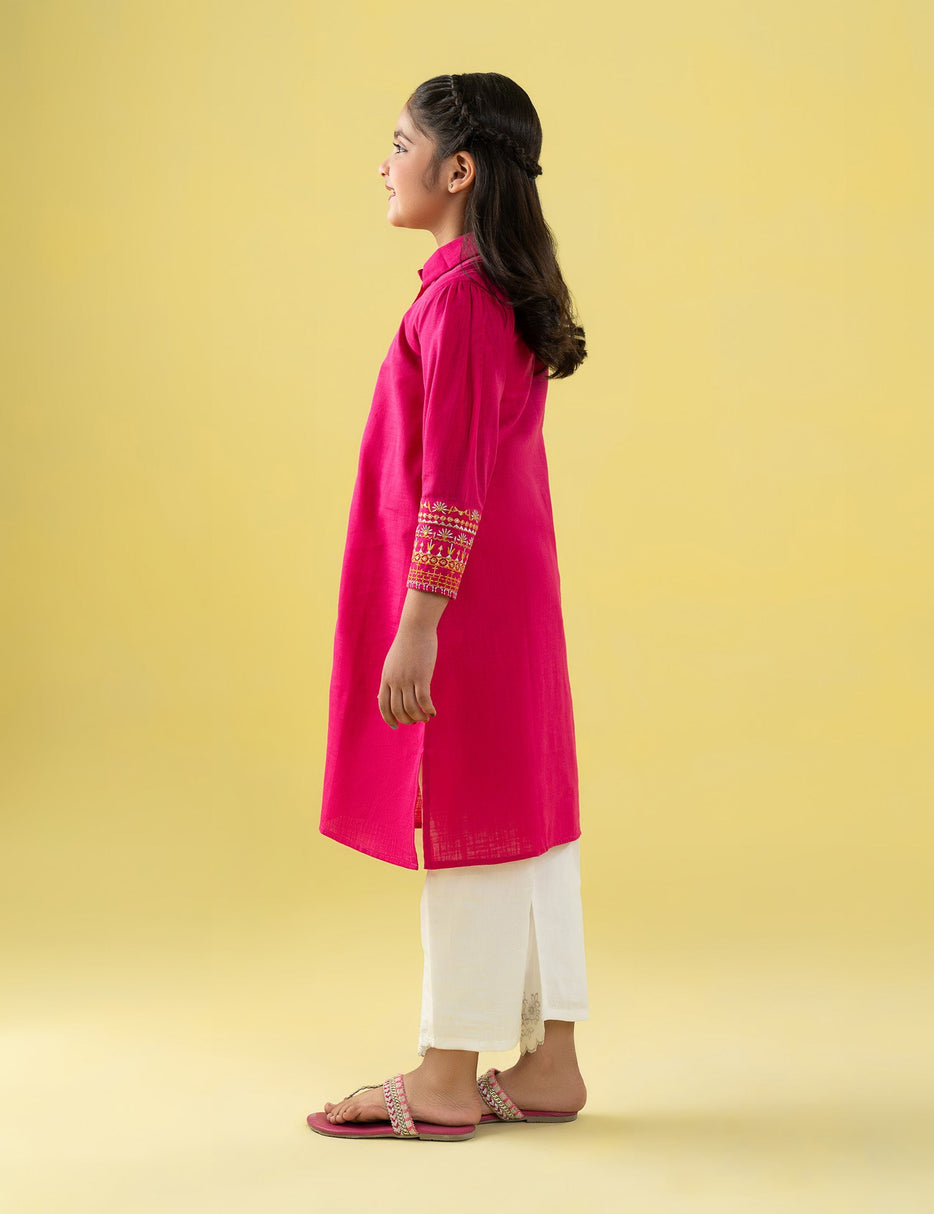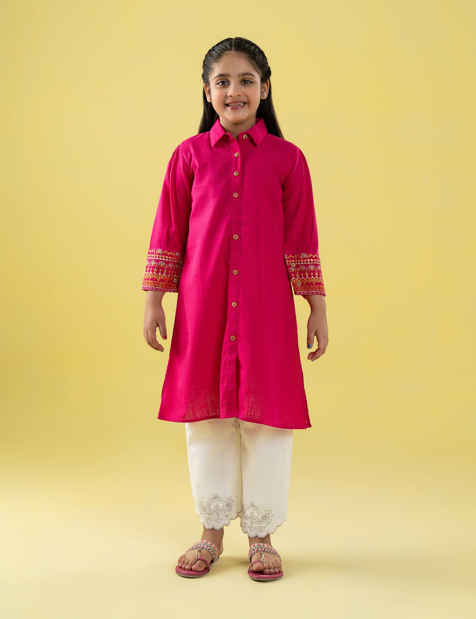 Gorgeous warm fabric is designed with love and contrast vibrant color embroidered cuff. Pair with white trouser. Must have this for summer season.