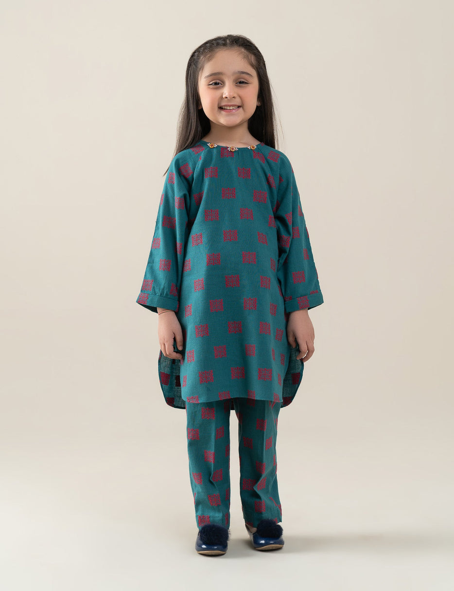 Gorgeous color fabric is designed with love, jacquard base with stylish cutline and handwork detail. Paired with matching trouser. Must have this for winter season.
