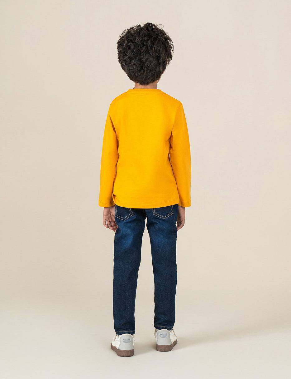 Let your little champ roar with confidence in this stylish mustard yellow full-sleeve t-shirt. Made from soft, breathable cotton fabric, this tee features a bold lion graphic with the words “Brave Like a Lion,” inspiring courage and fun. Perfect for everyday wear, it keeps your boy comfortable all day long—whether at school, playtime, or casual outings. The classic crew neck and easy fit make it a wardrobe essential for every little adventurer.