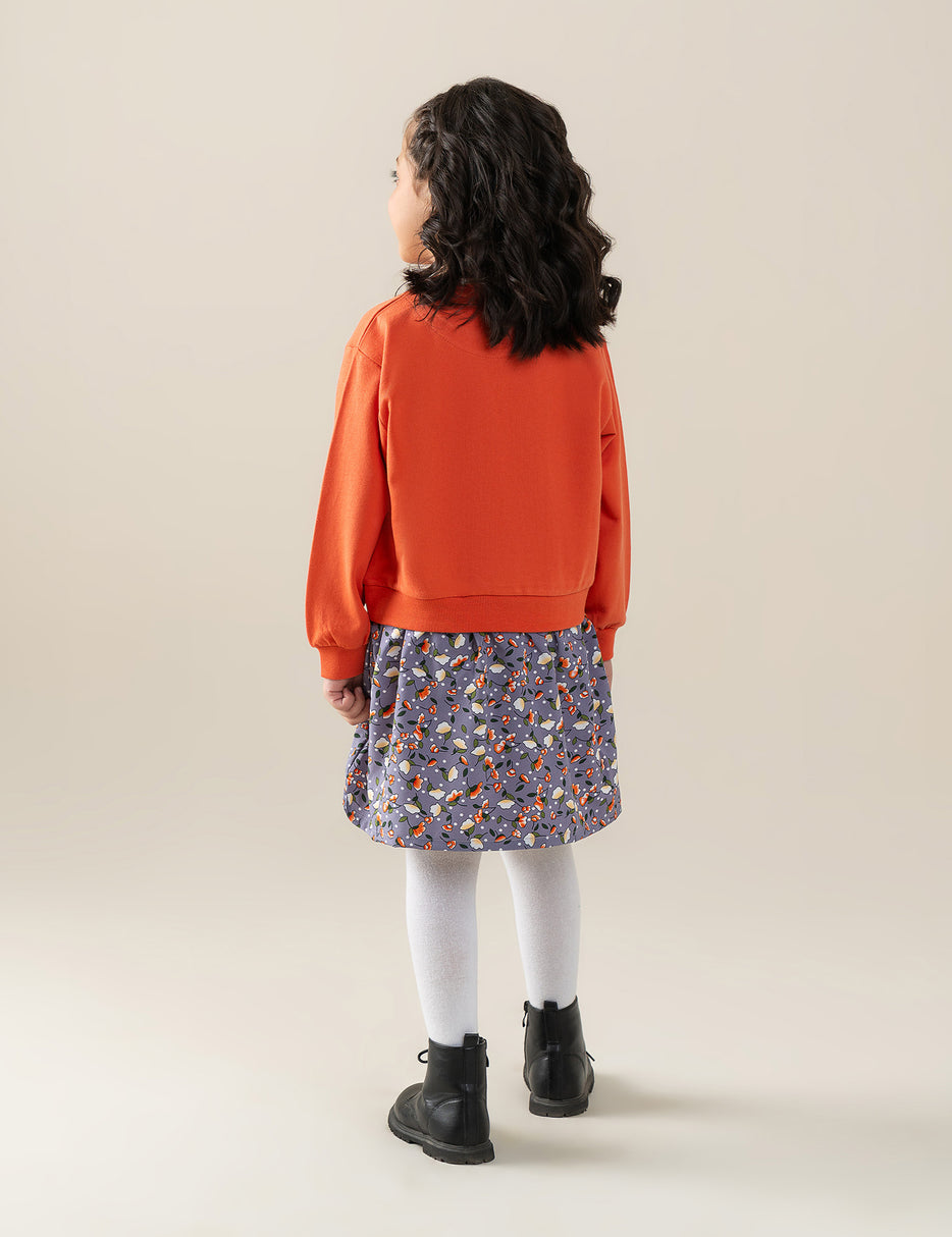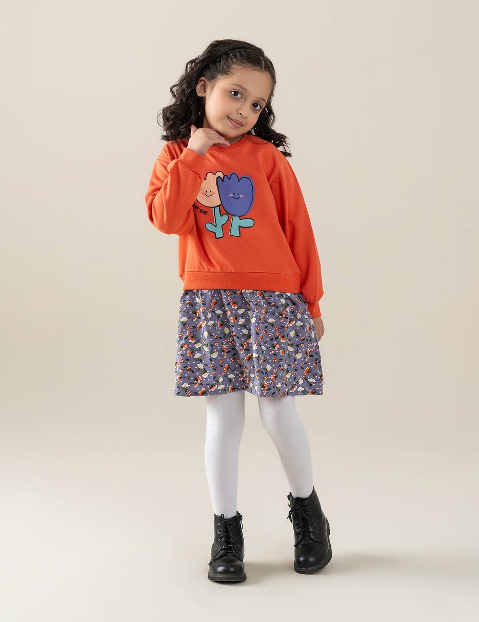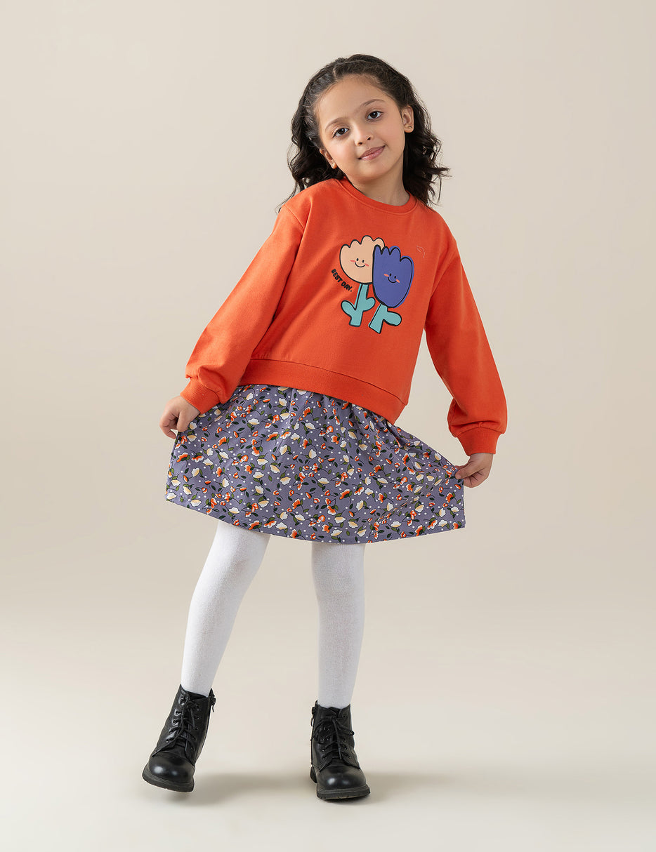 Bright, playful, and comfy—this Floral Dress is perfect for your little girl’s everyday adventures! The soft orange sweatshirt top features adorable cartoon flower graphics, while the attached floral skirt adds a fun, stylish twist. Made from cozy, breathable fabric, it’s ideal for school days, outings, or casual wear. A cute all-in-one outfit that keeps her comfy and stylish all day long!