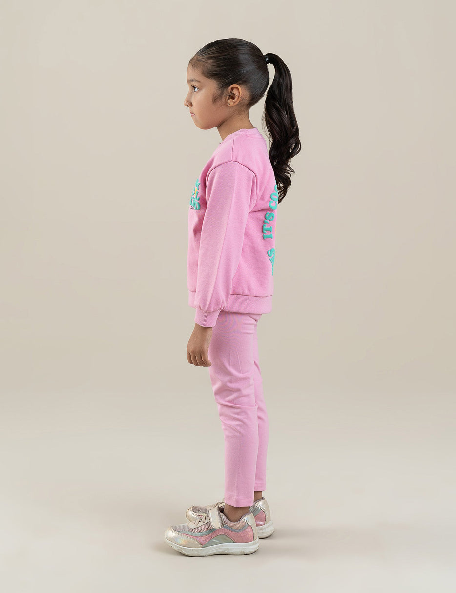 This cute and comfy 2-piece suit for little girls features a soft pink sweatshirt with a cheerful “Happy Cool Kind” graphic and matching leggings decorated with a bright smiley print. Made from cozy, stretchable fabric, it’s perfect for daily wear, playtime, or casual outings. A fun, positive, and stylish outfit that keeps your little one looking adorable and feeling comfortable all day long!
