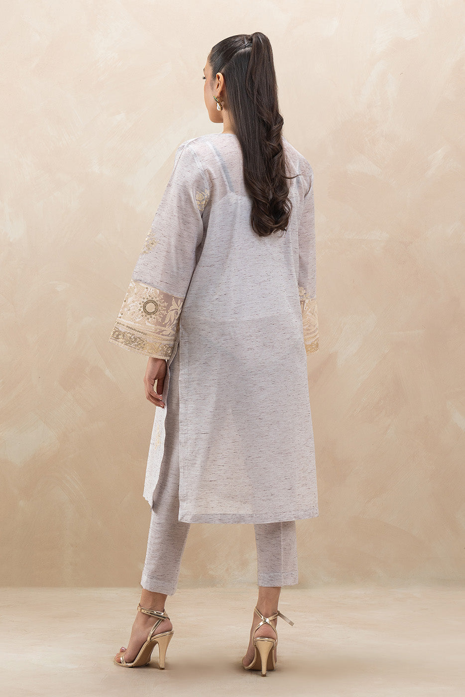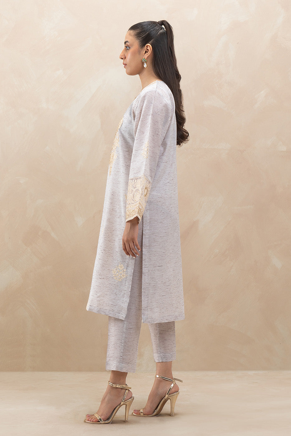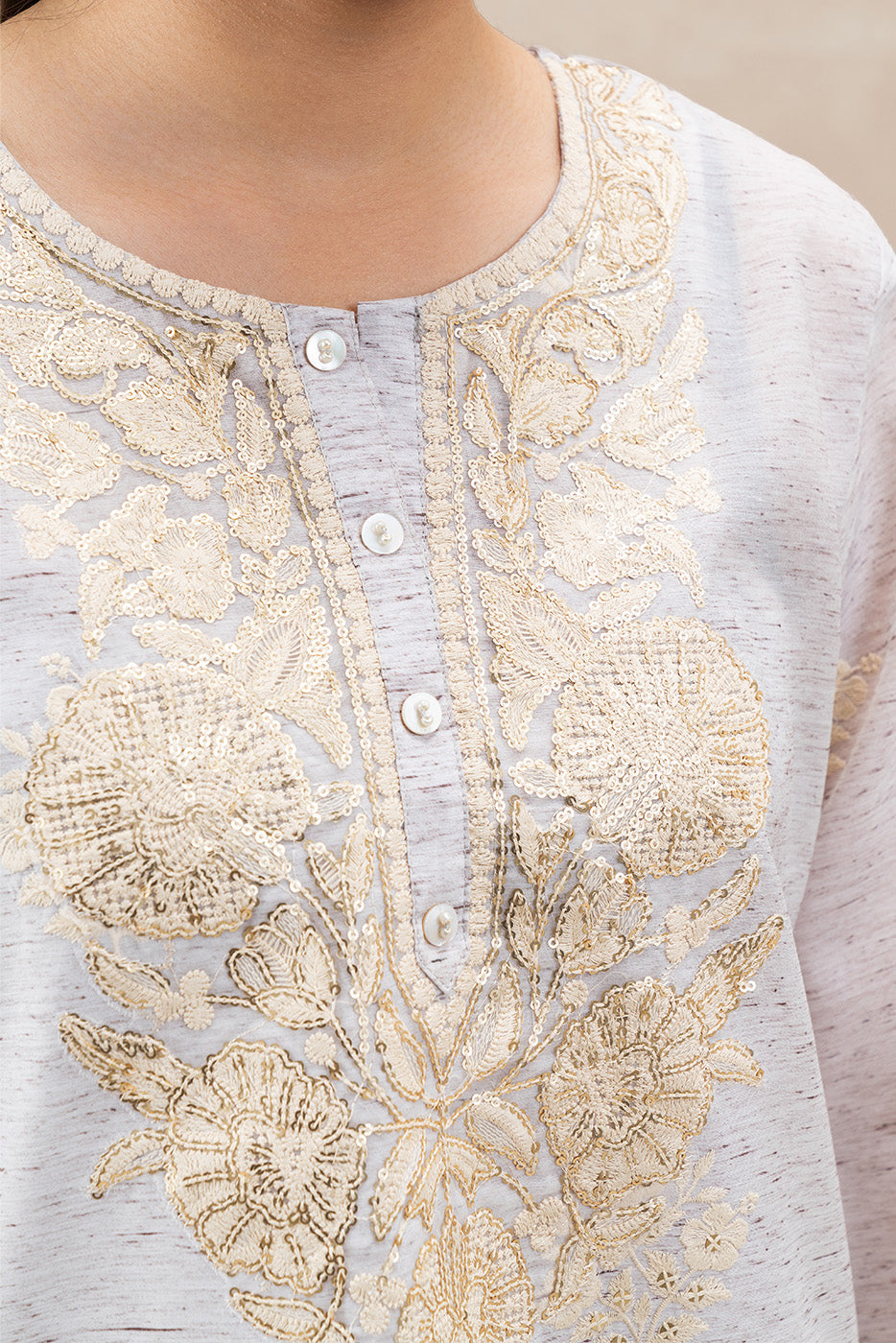 - Description: 2Pc.Embroidered Kurta With Boat Neck And Slit.Button Detail On Placket.Embroidered Sleeves.Paired With Straight Pants.