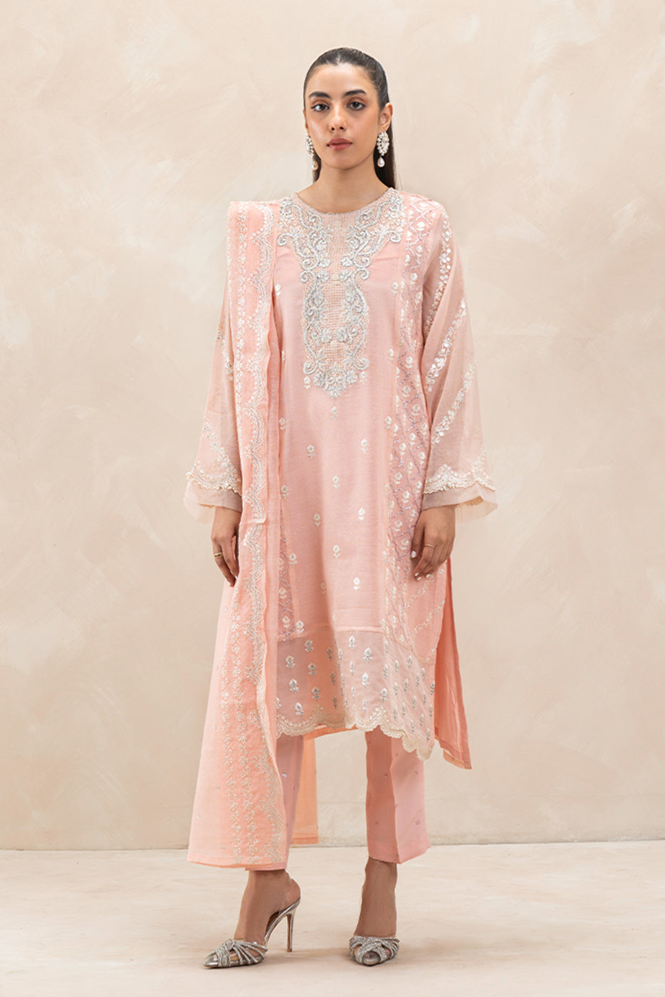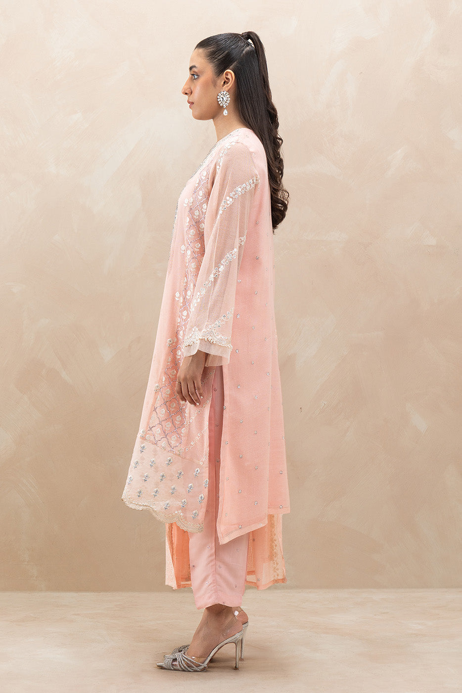 - Description: Embroidered Front And Sleeves With Organza Insert Detail Finished With Handwork . Paired With Matching Pants And Cotton Net Dupatta