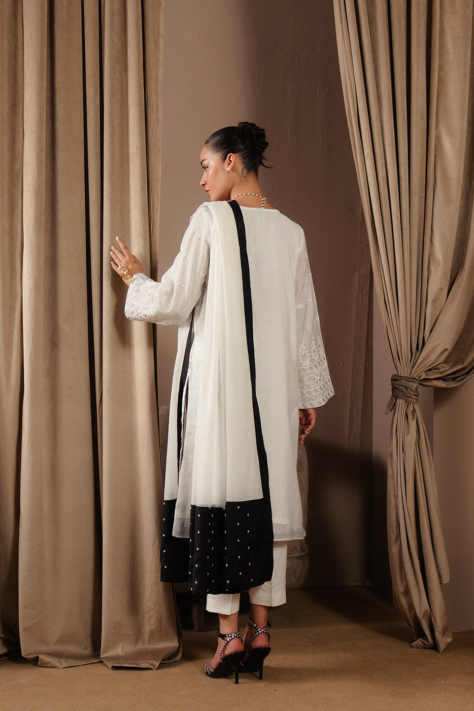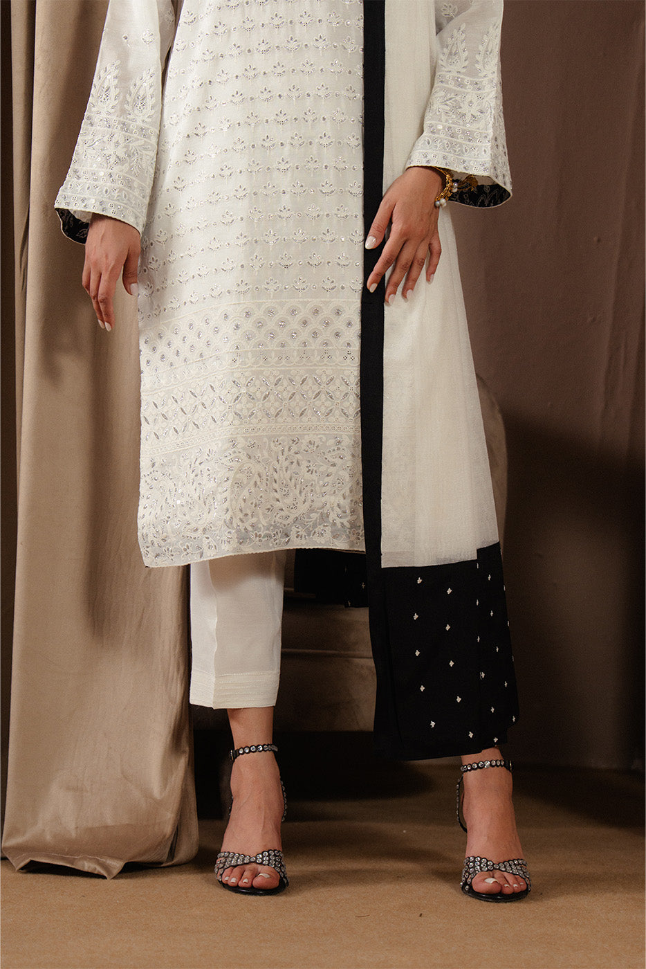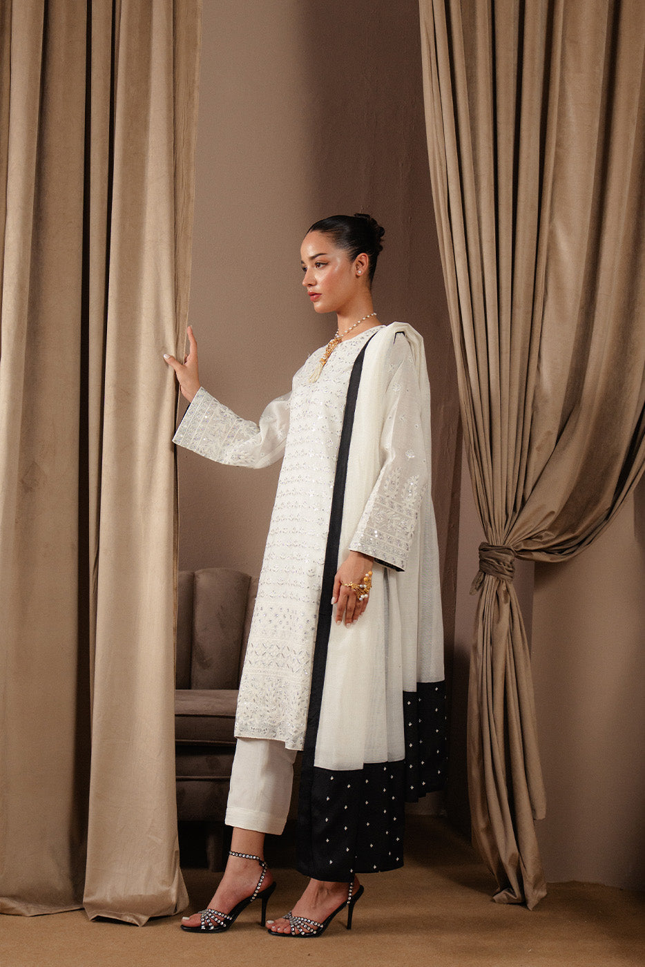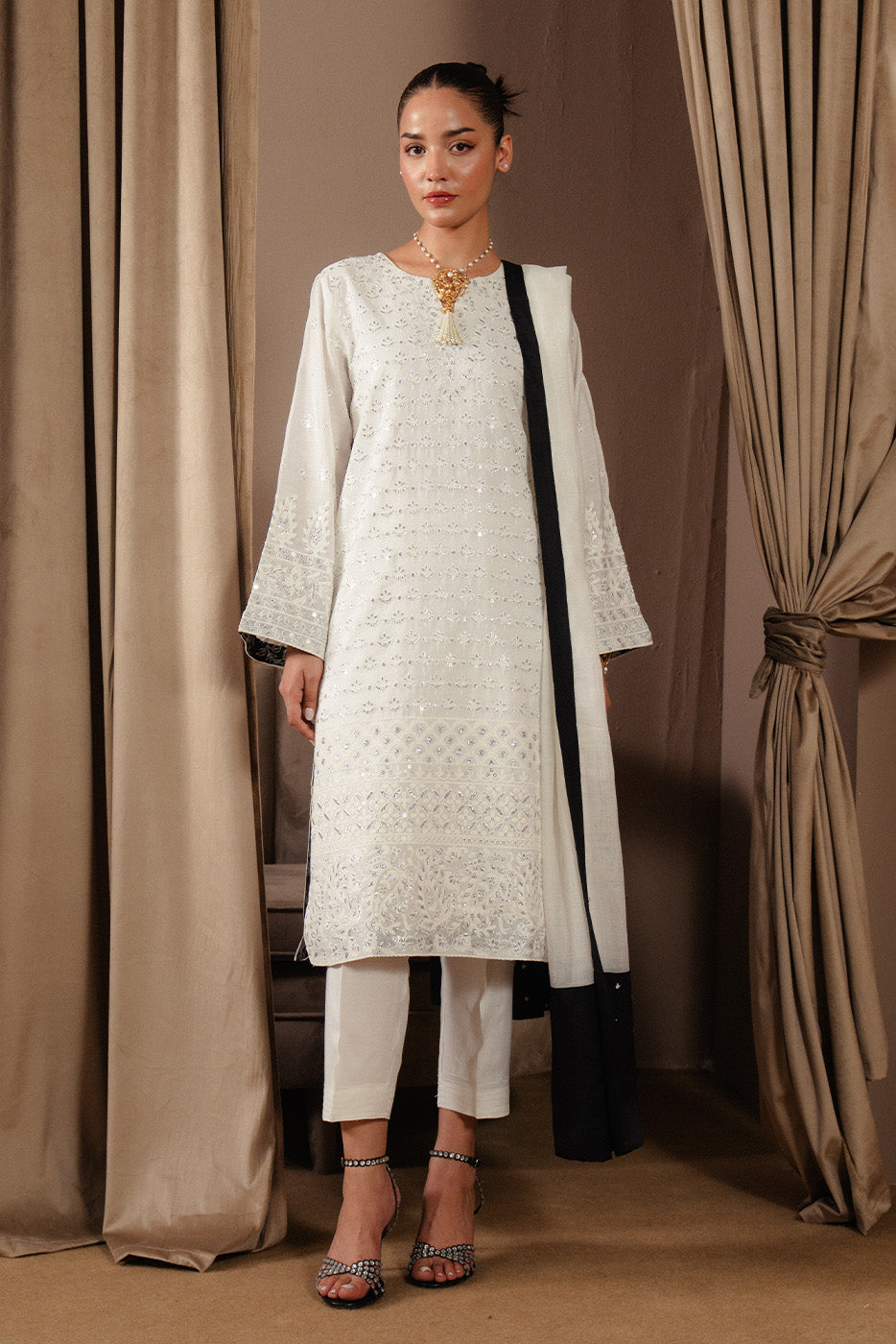 - Description: 3Pc.Embroidered Shirt With Organza Insertion On Neckline.Round Neck With Slit.Paired With Straight Pants And Embroidered Dupatta.