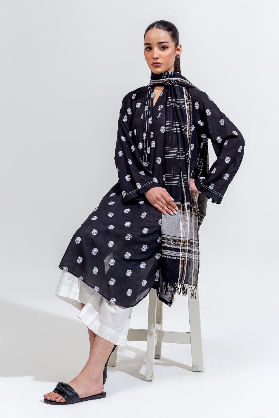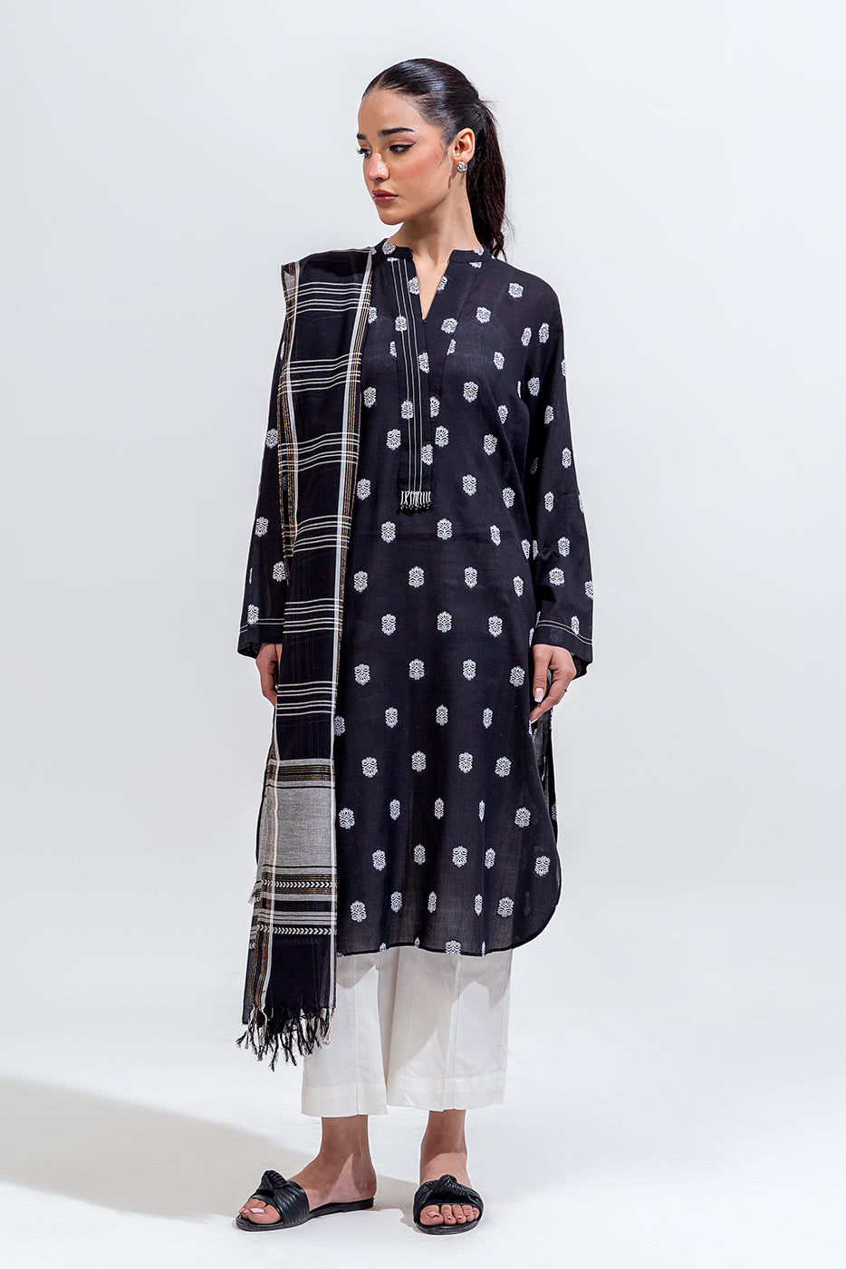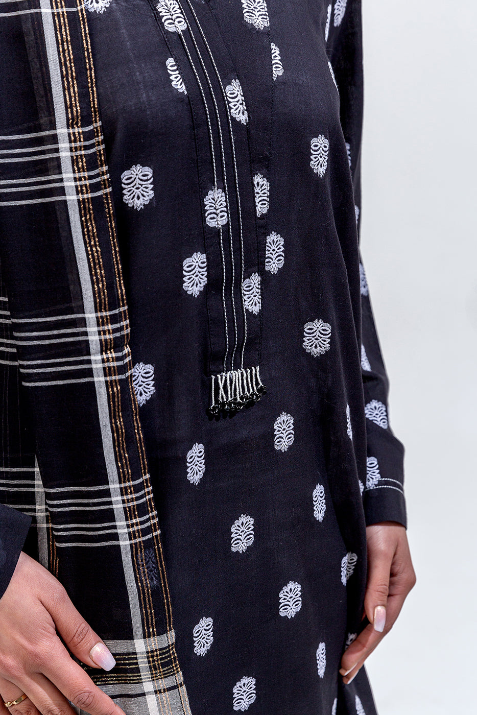 - Description: 2Pc.Jacquard Shirt With Band Neckline And Placket.Beads Detail On Placket.Paired With Jacquard Dupatta.