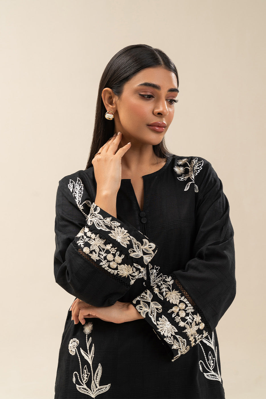 - Description: Embroidered Shirt With V Neckline And Detail On Sleeves.