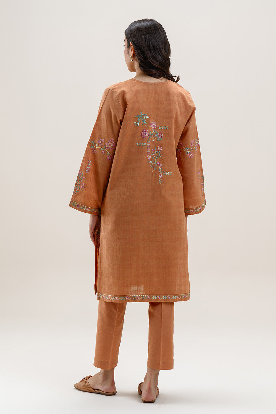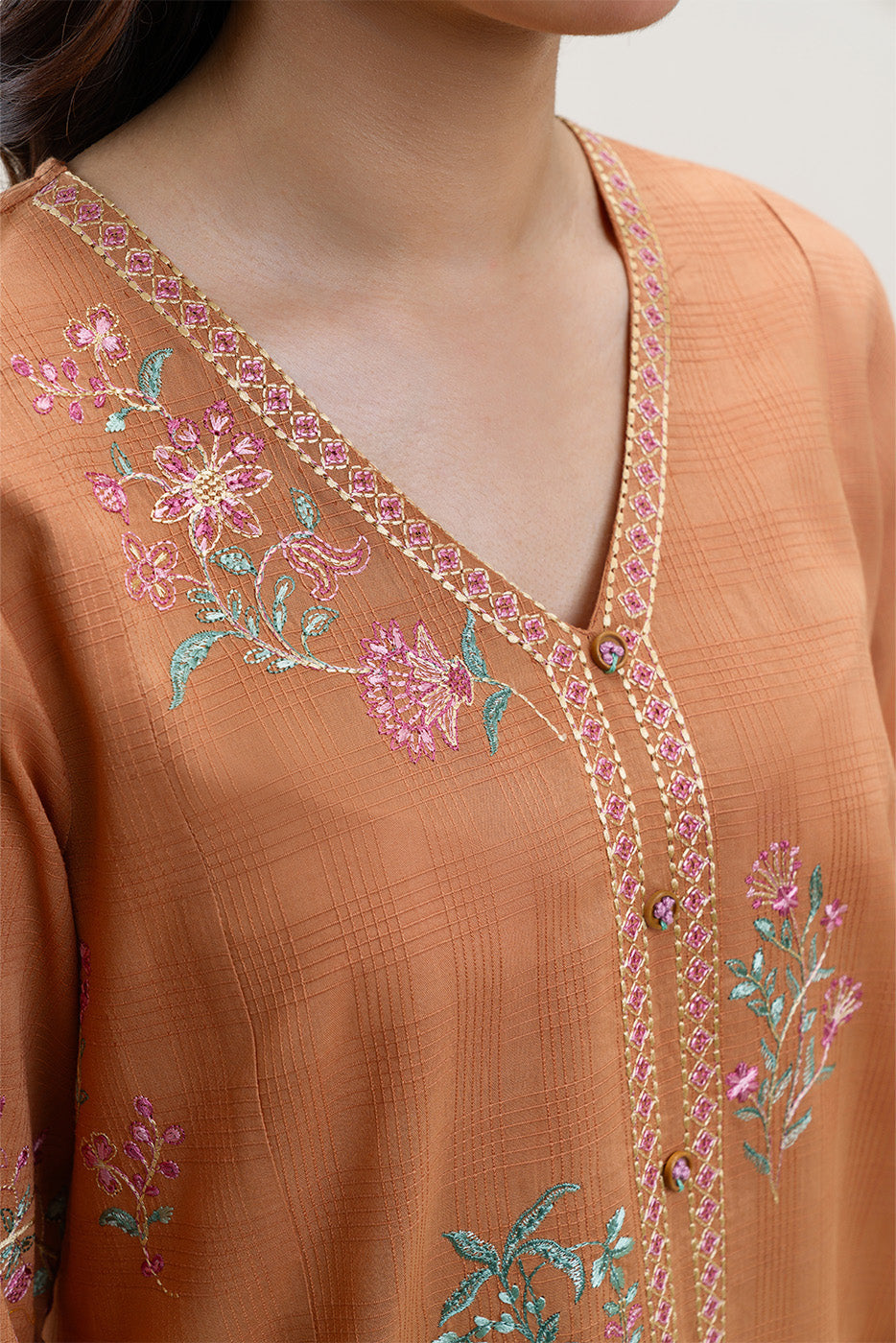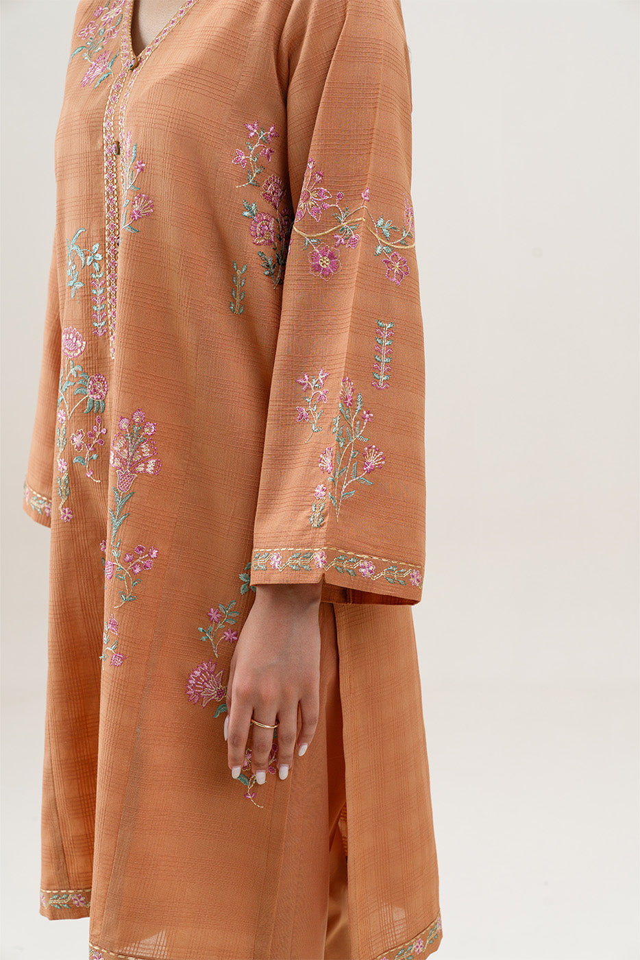- Description: Regular Fit Embroidered Shirt With Hand Embroidered Buttons On Neckline Paired With Straight Trouser.