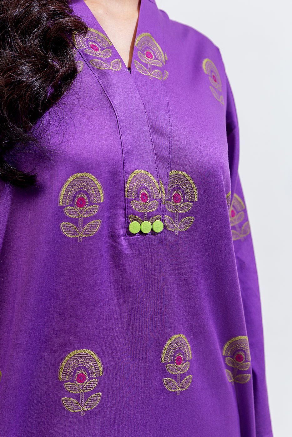 - Description: Basic Jacquard Kurta With Band And Placket.Hand Embroidery And Buttons On Front.