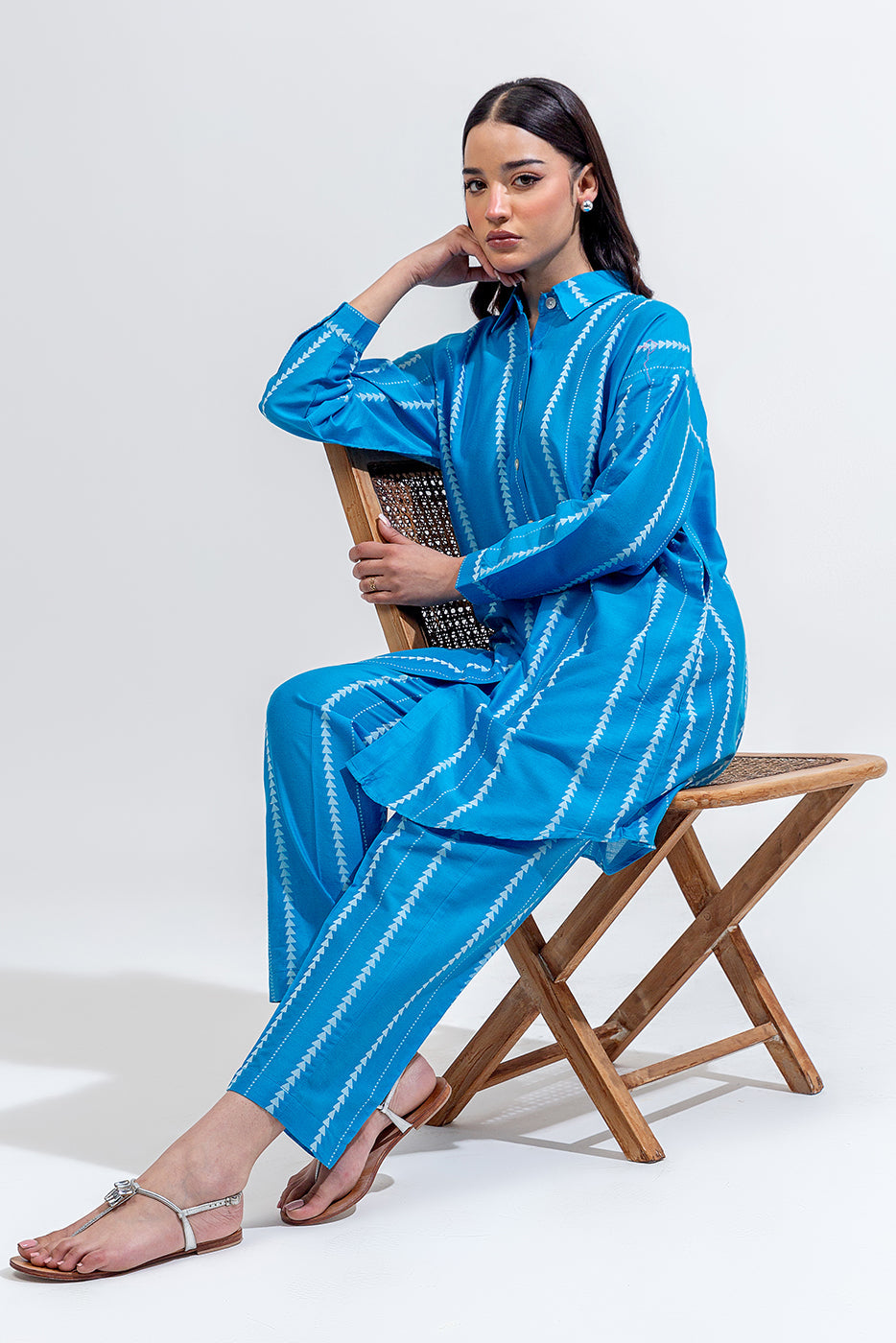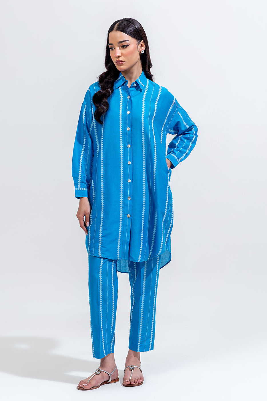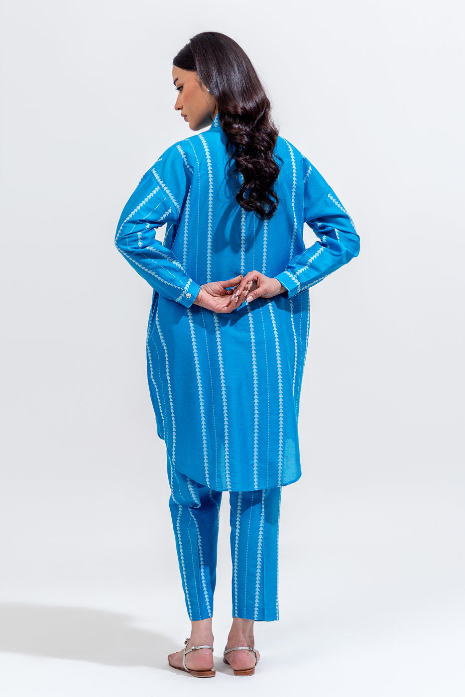 - Description: Drop Shoulder Boxy Fit Tunic With Collar And Cuff Detail Paired With Straight Pant