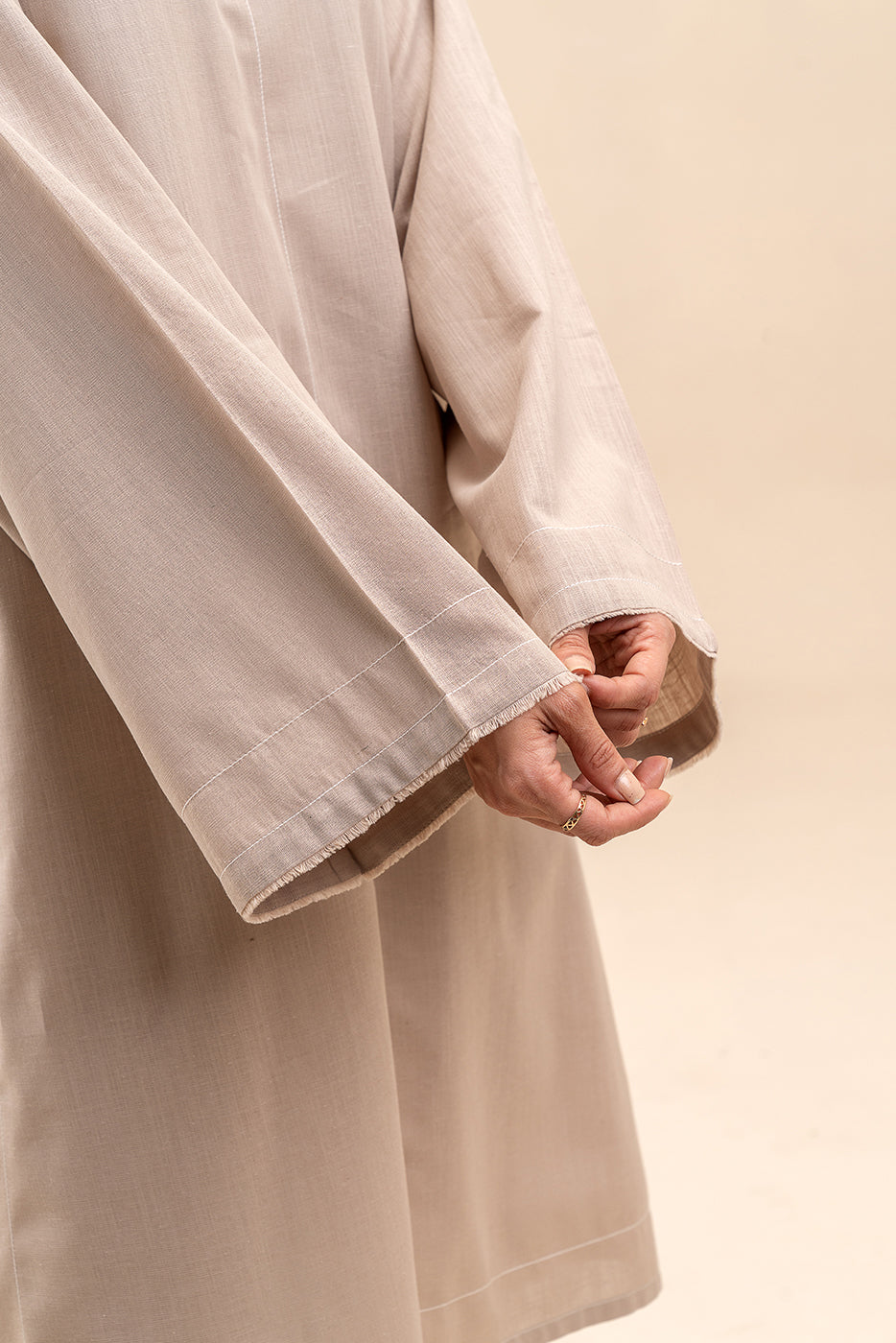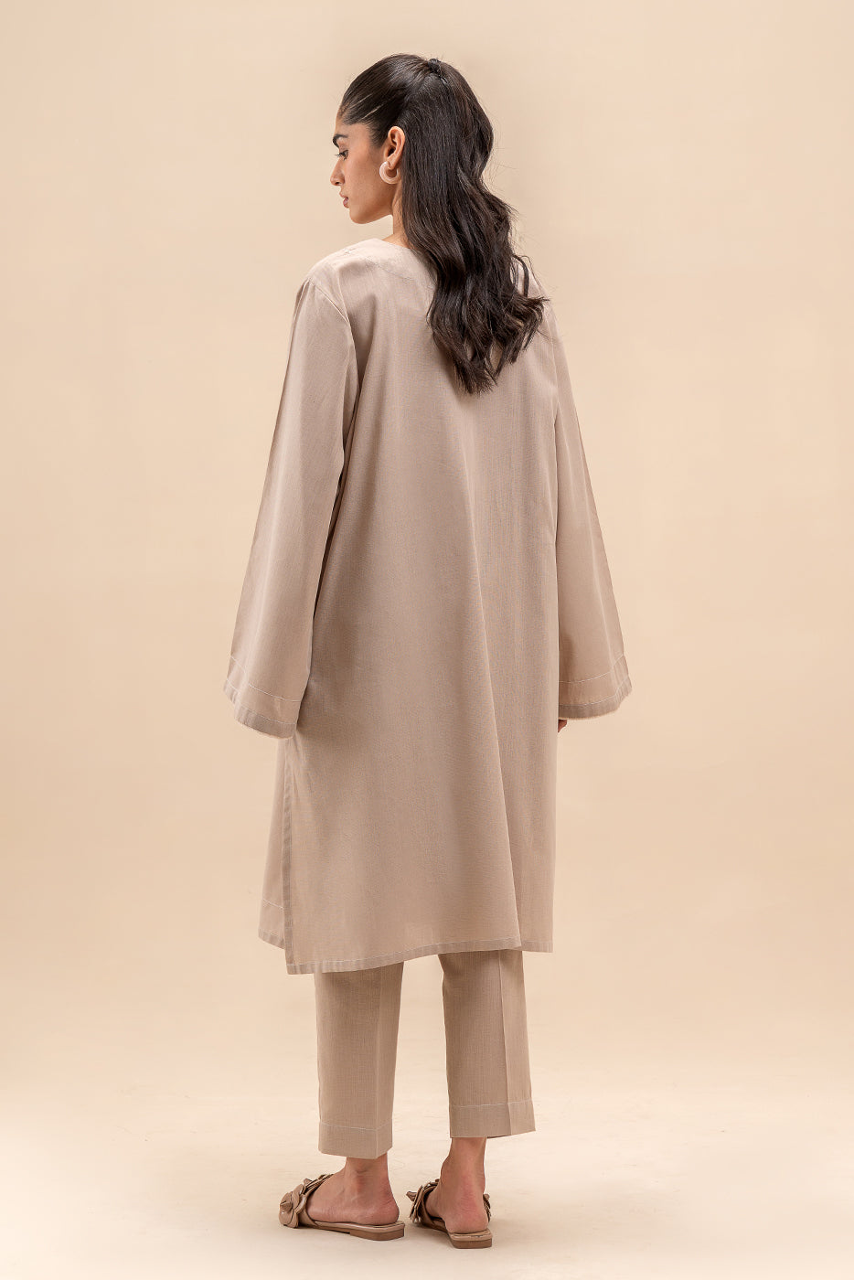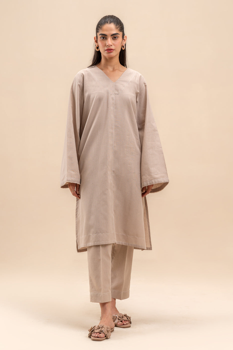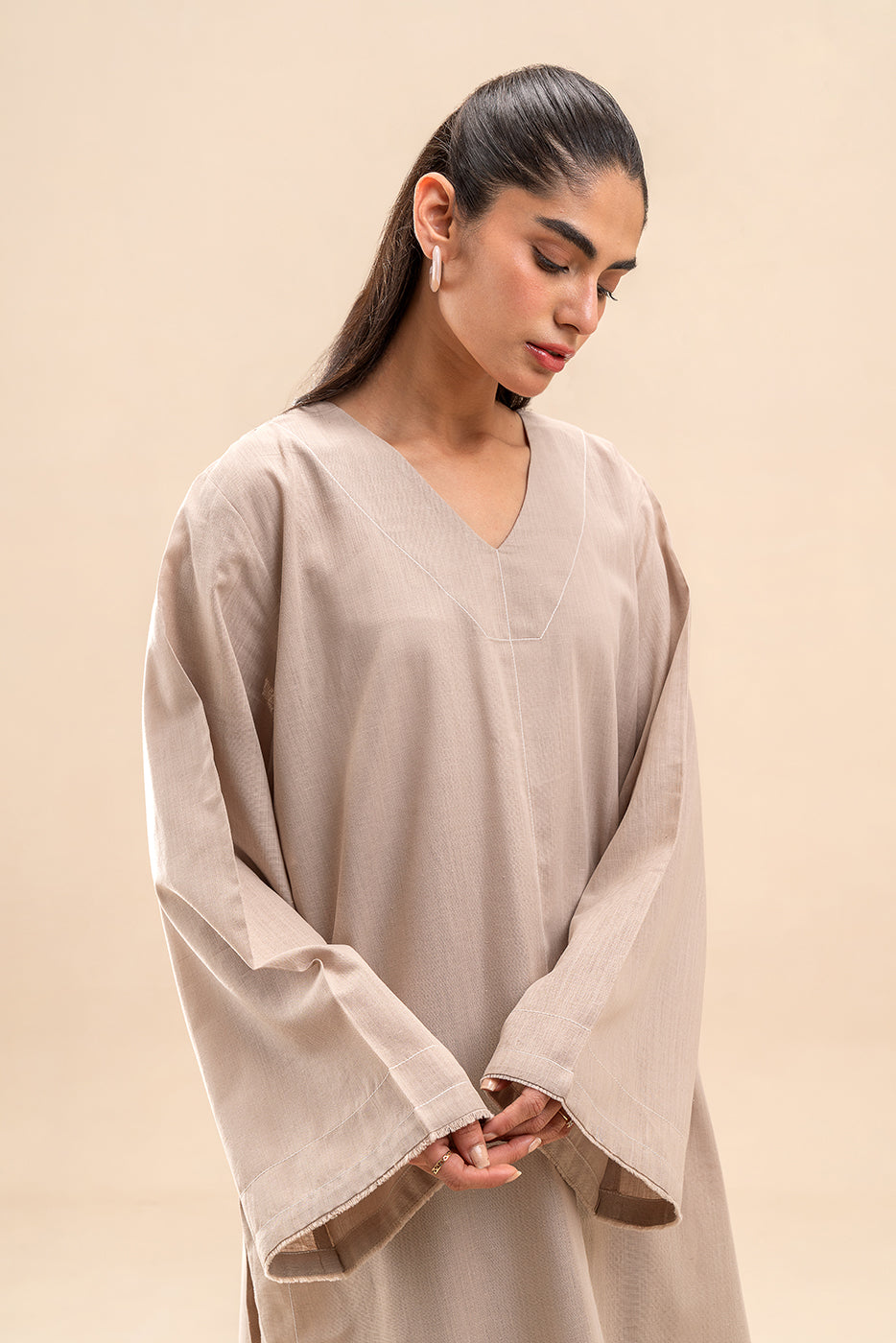 - Description: Basic Linen Coord Set With V- Neckline And Contrasting Stitch Detail On Front , Back And Sleeves. Paired With Straight Pants To Complete The Look.