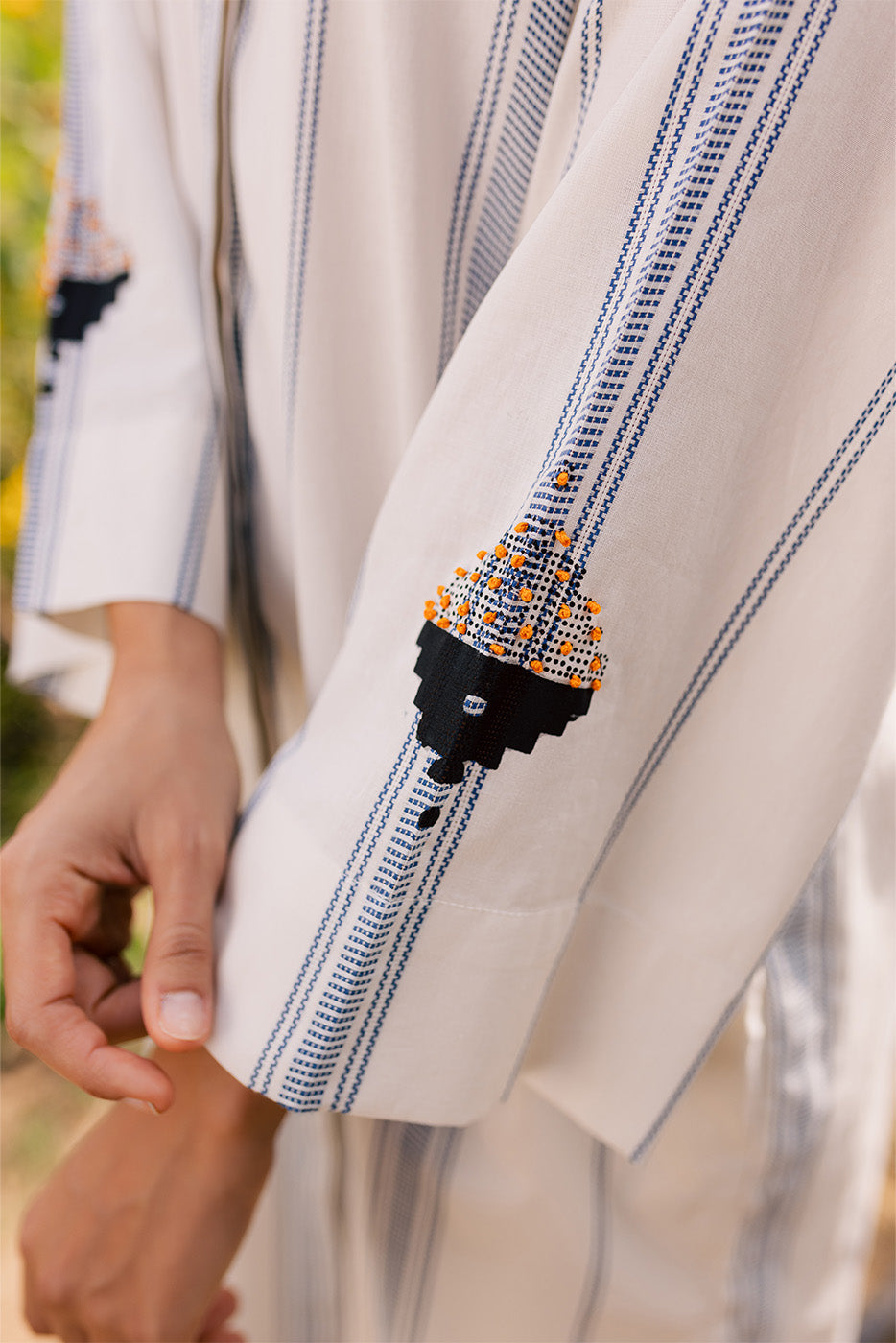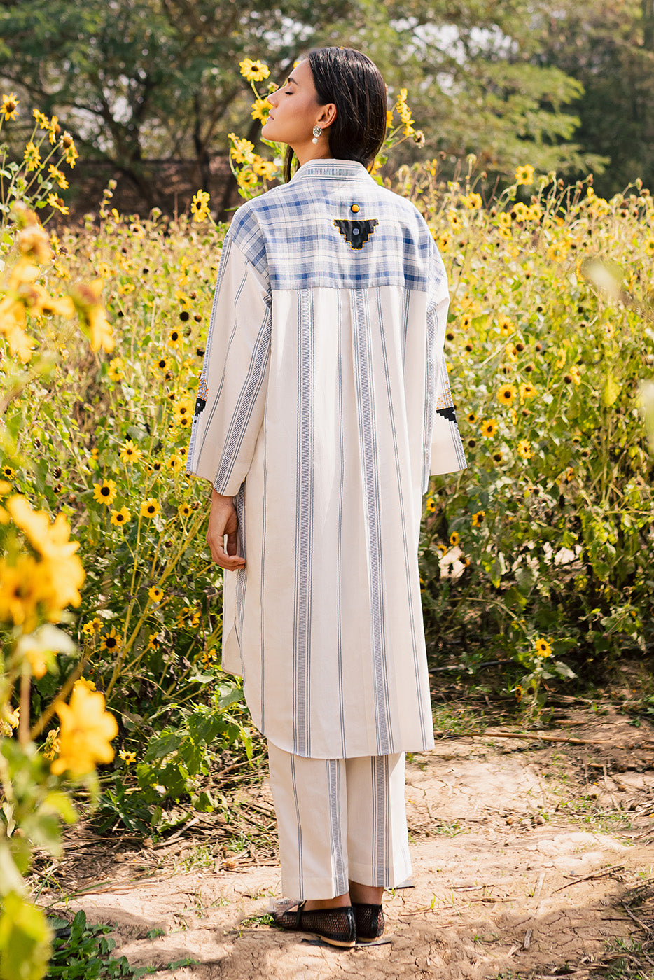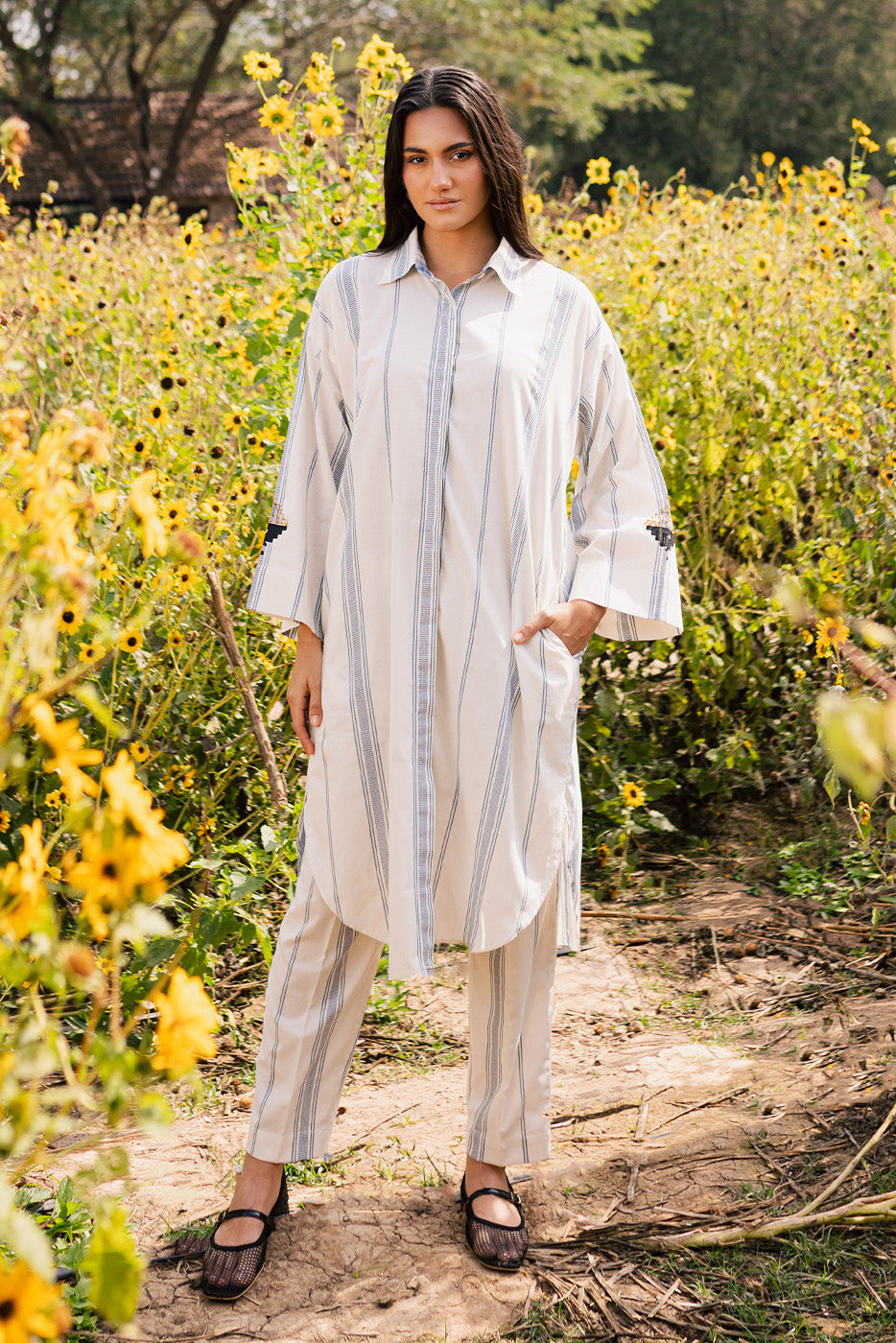 - Description: 2Pc.Button Down Shirt With Placket And Button Detail.Round Hem.Printed Motif On Sleeves And Back.Paired With Straight Pants.