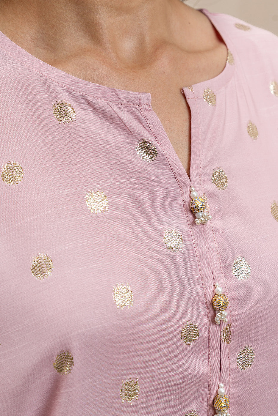 - Description: Jacquard Shirt With Straight Pants Finished With Scalloped Embroidery Border On Sleeves And Hem. Hand Embellished Detail On Neckline