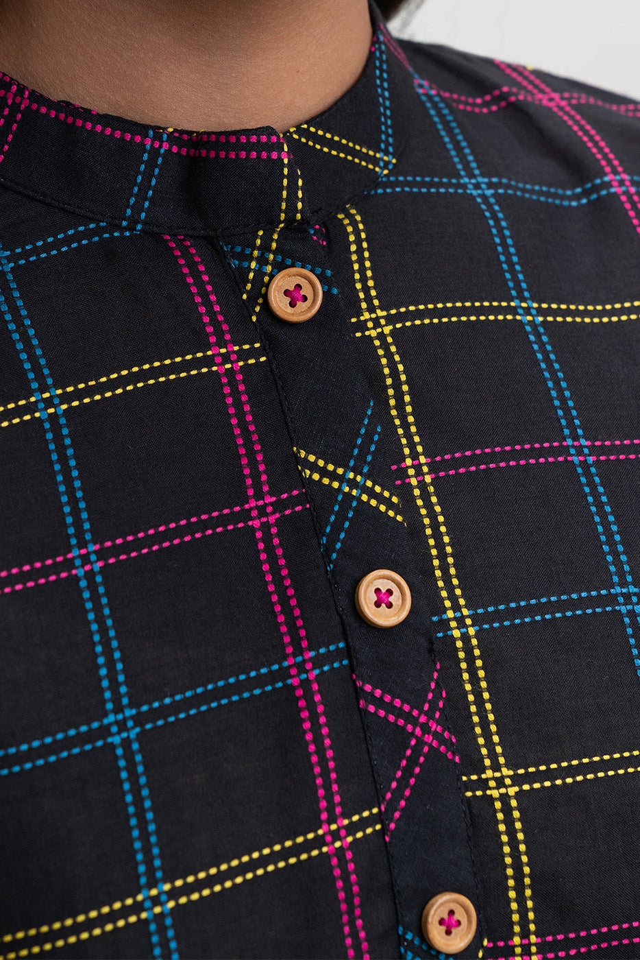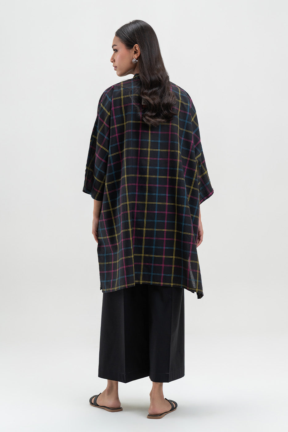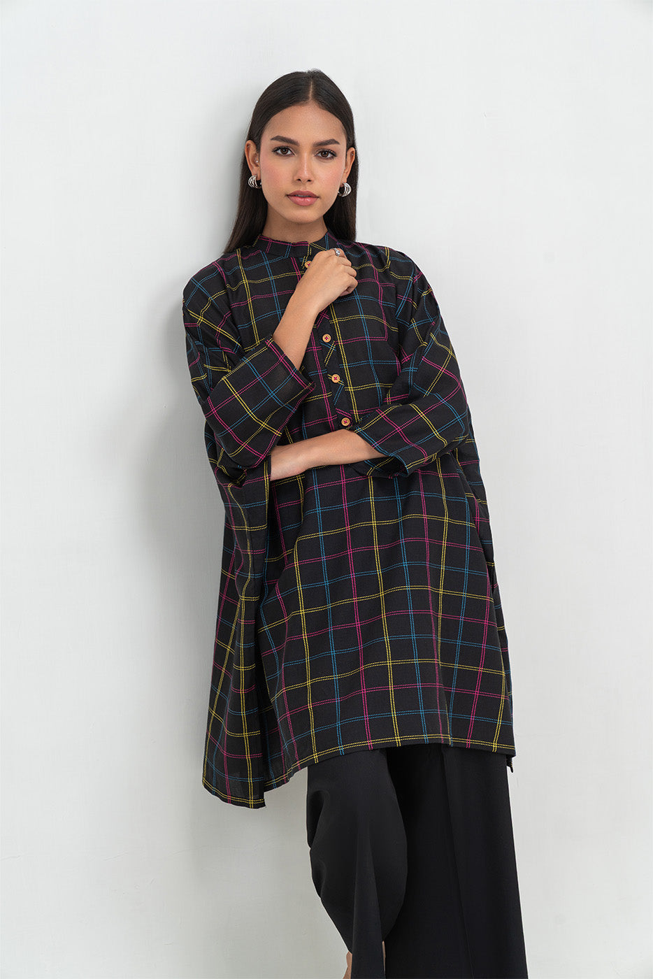 - Description: Basic Band Collar Boxy Tunic With Button Detail On Front Placket