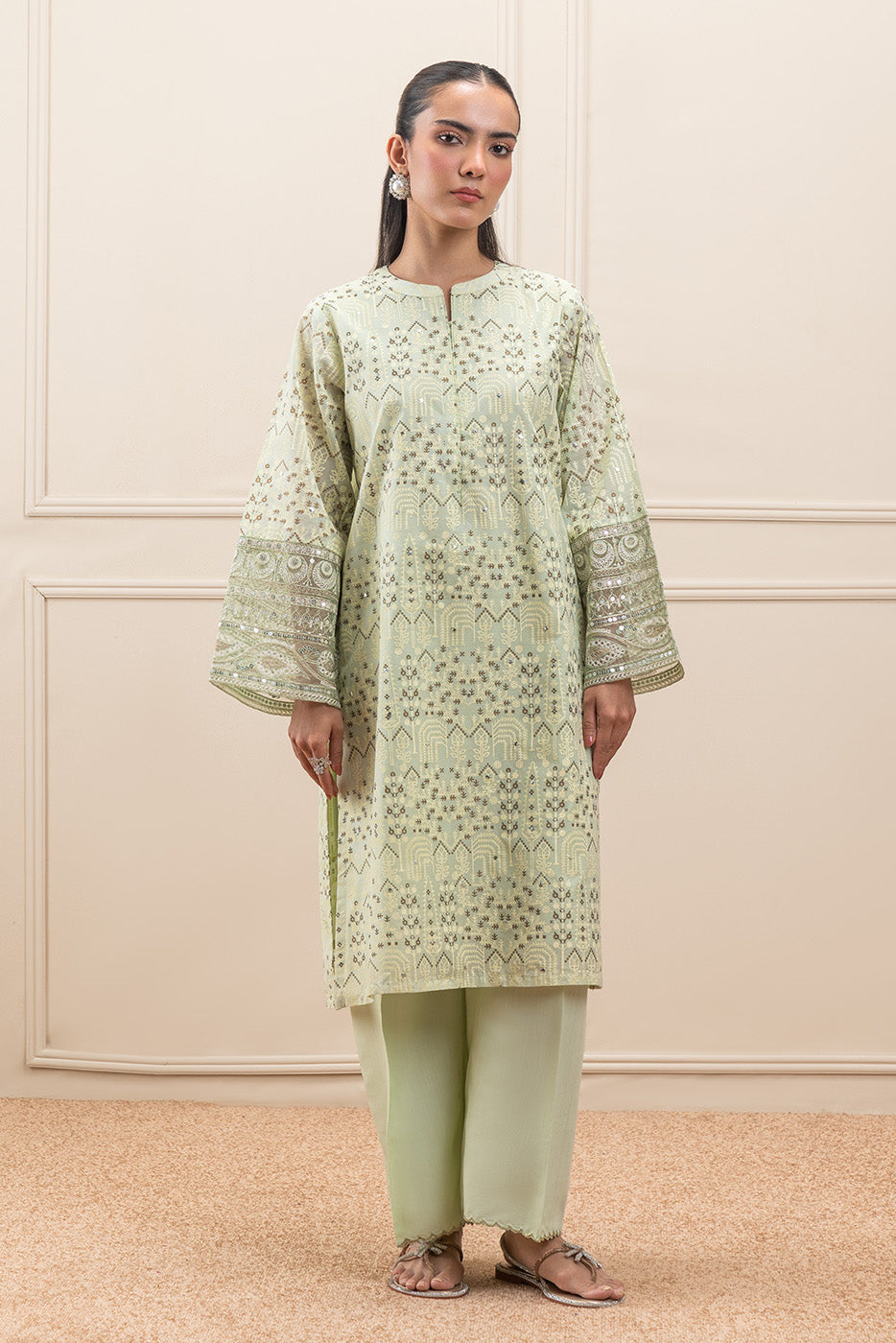 2 PIECE EMBROIDERED PAPER COTTON SUIT (PRET)