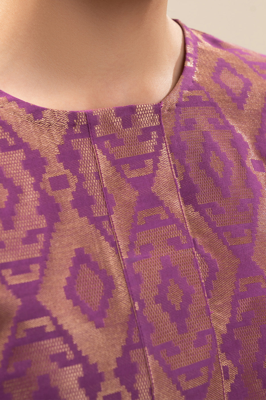 - Description: 2Pc.Jacquard Shirt With Boat Neck With Placket.Embroidered Sleeves.Paired With Straight Pants.